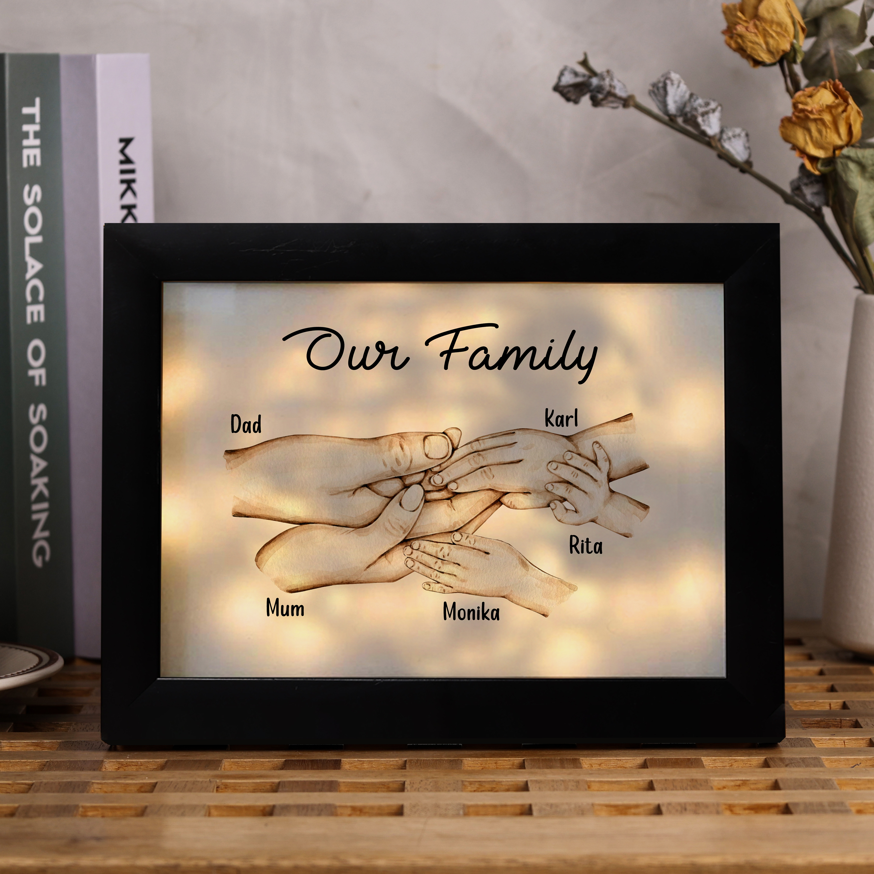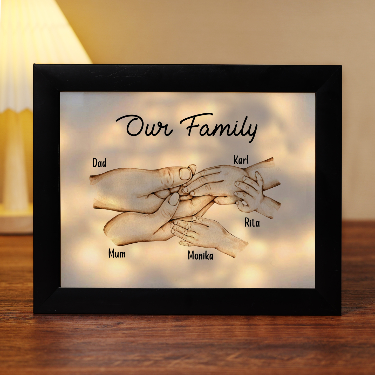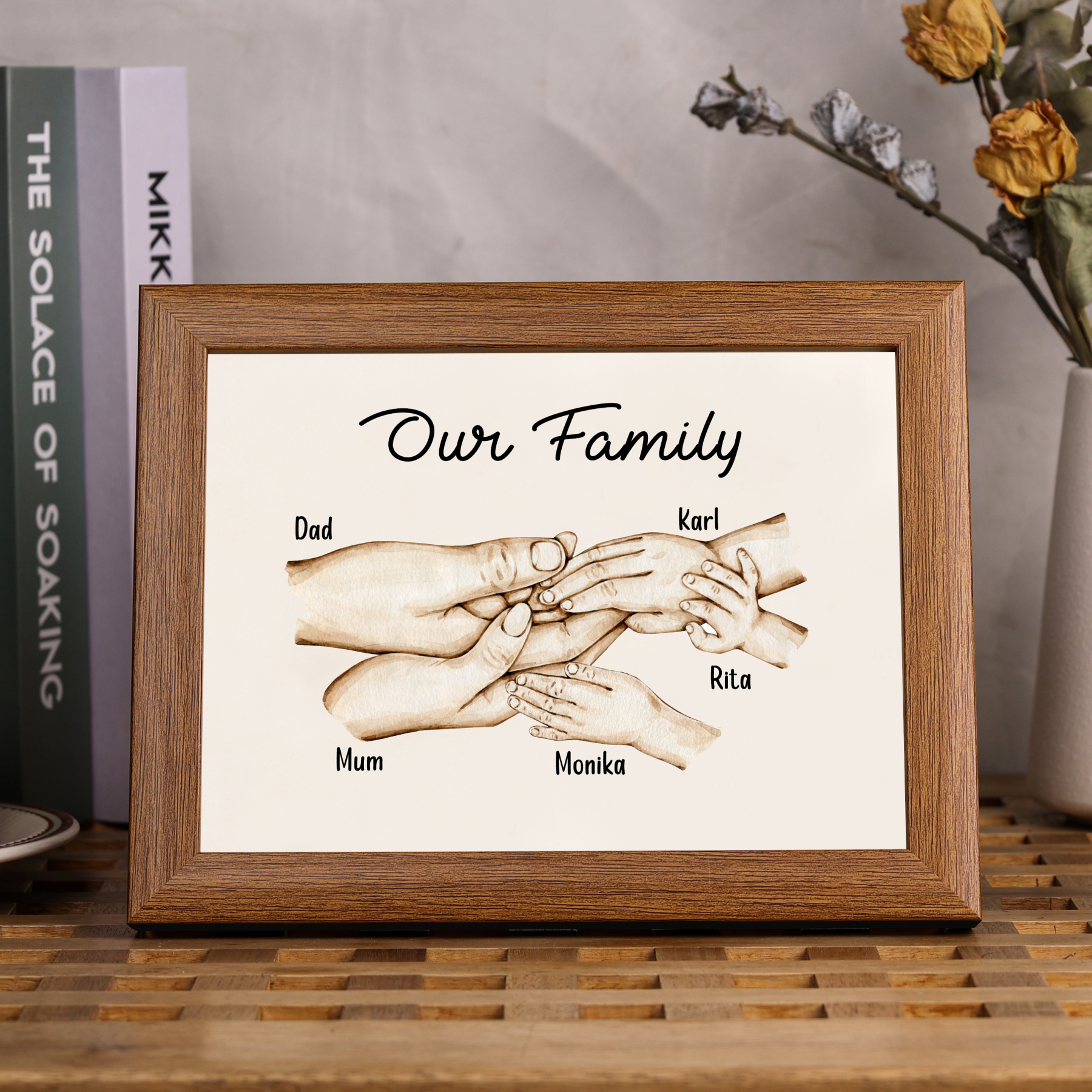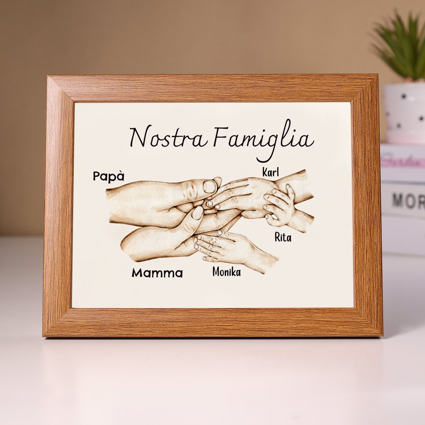 Nostra famiglia-Cornice di legno mano nella mano 5 nomi personalizzati regalo per famiglia