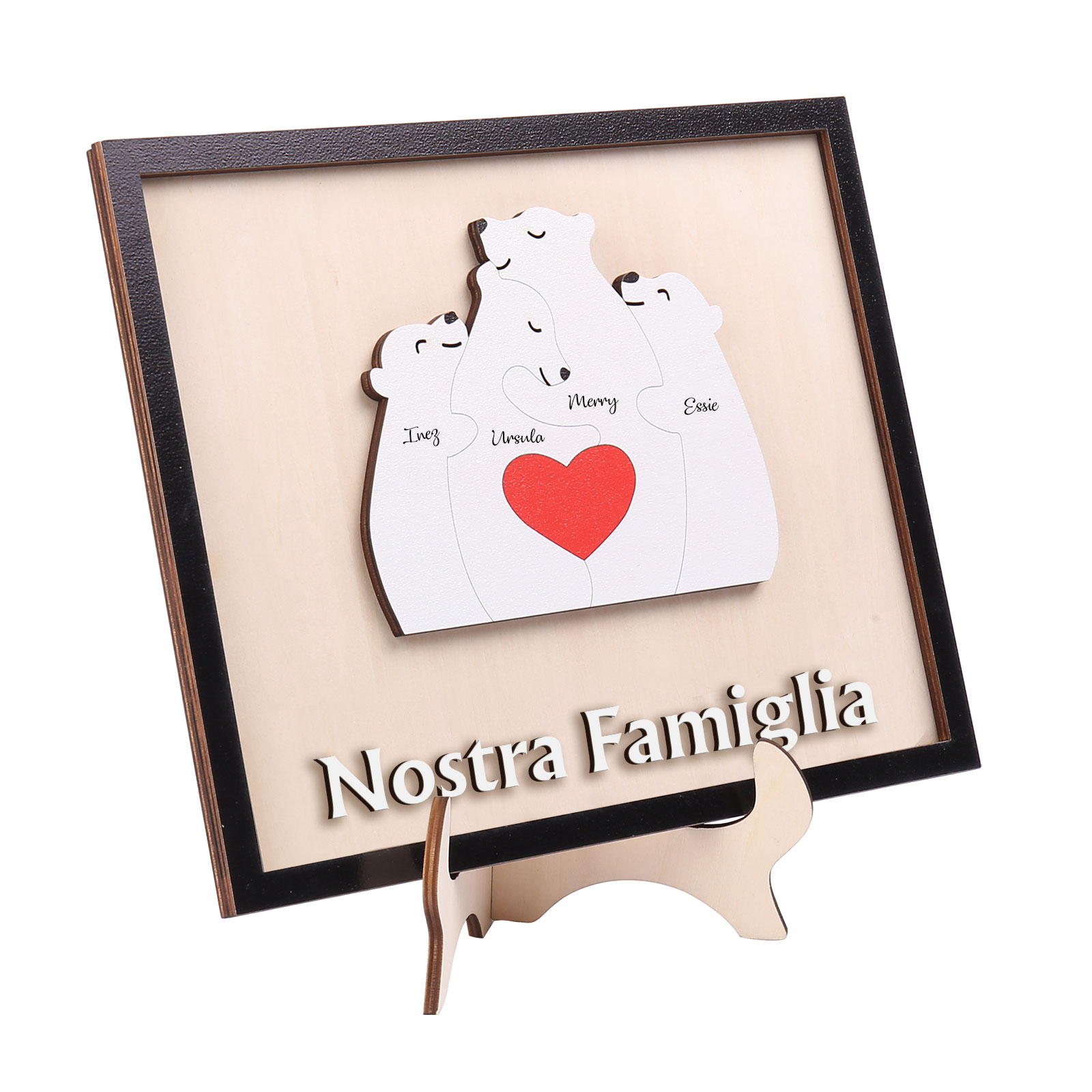 Nostra Famiglia-Targa in legno orso con 4 nomi personalizzati regalo per mamma/nonna