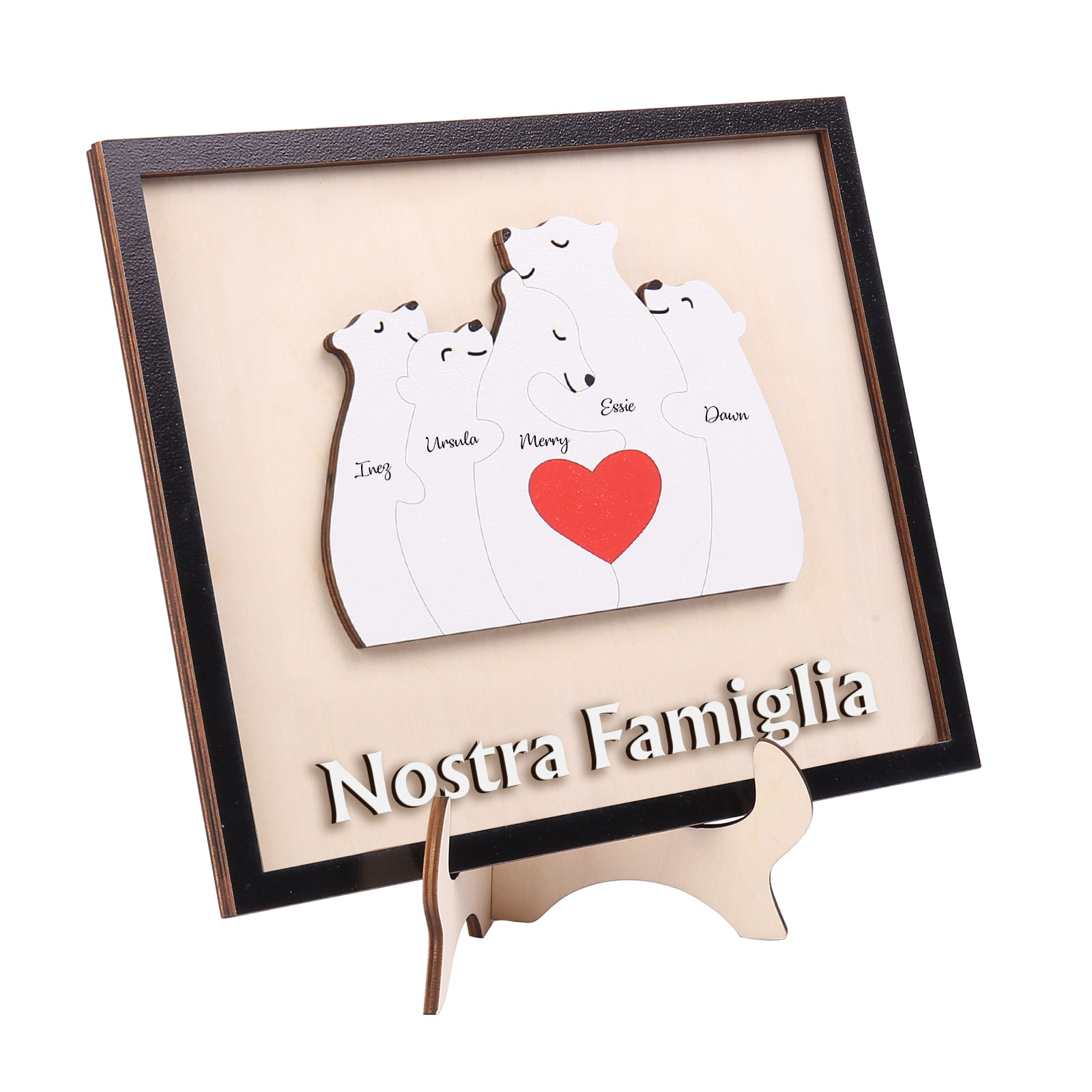 Nostra Famiglia-Targa in legno orso con 5 nomi personalizzati regalo per mamma/nonna