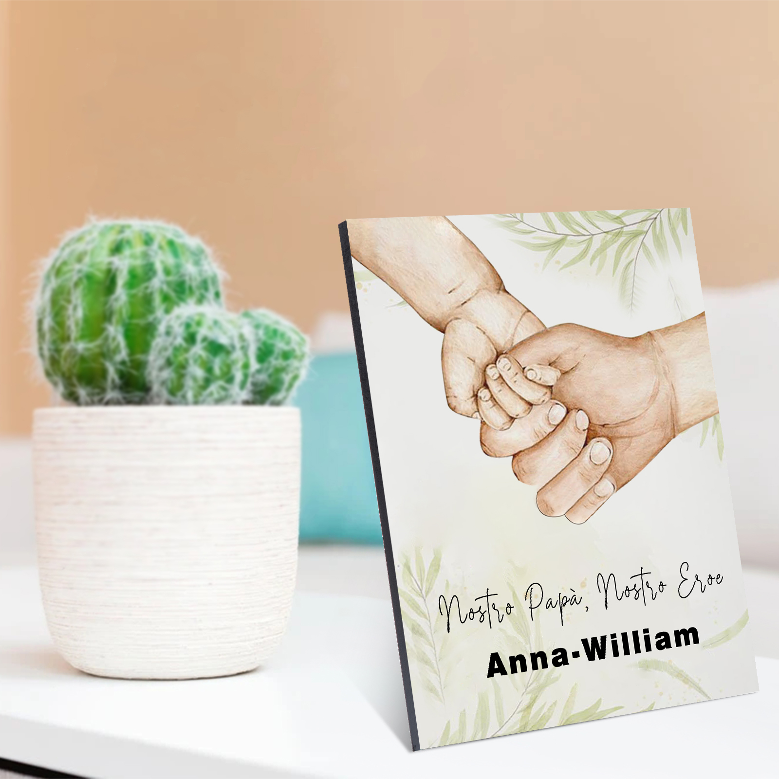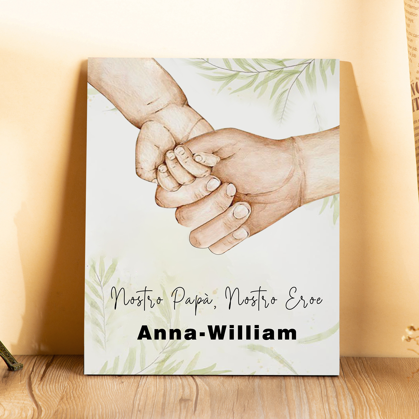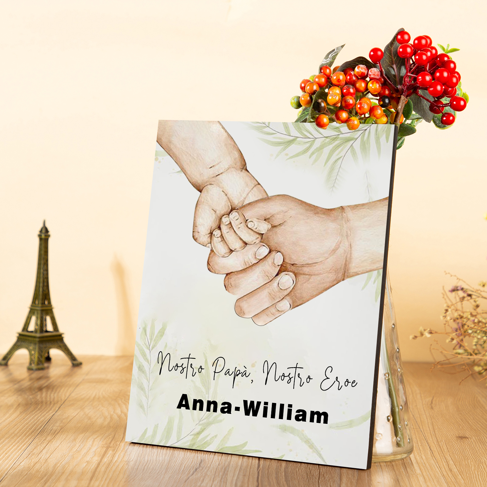 Nostro papà nostro eroe-Targa di Legno mano nella mano Per papà 2 nomi e 1 testo Personalizzabili regalo per papà