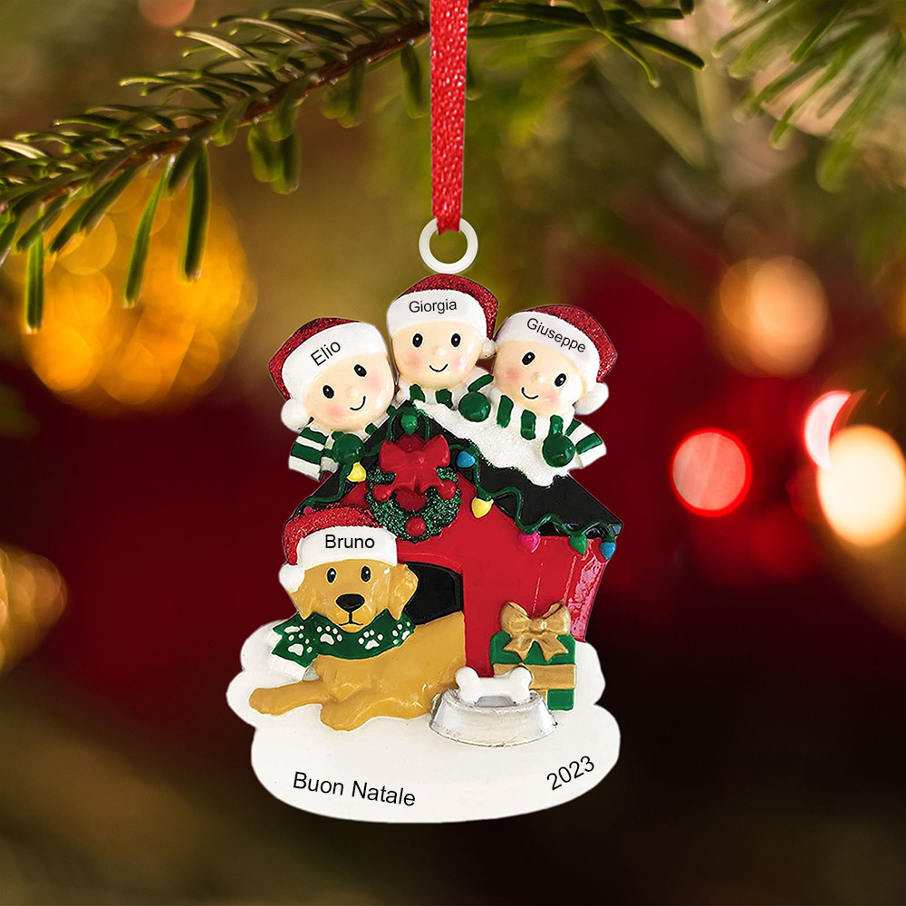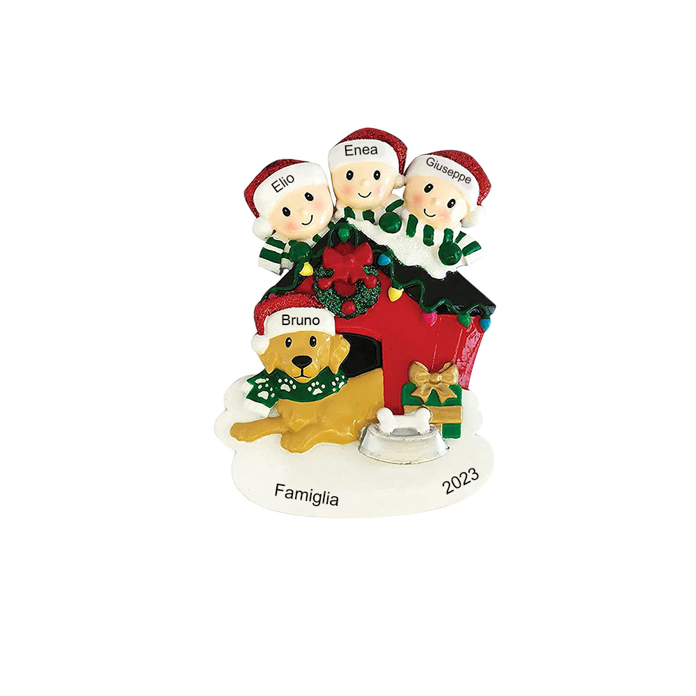 Ornamenti cane e famiglia per albero di Natale decorazione casa 4 nomi personalizzati