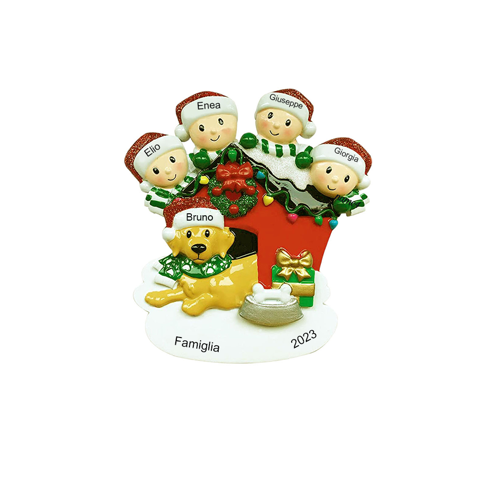 Ornamenti cane e famiglia per albero di Natale decorazione casa 5 nomi personalizzati