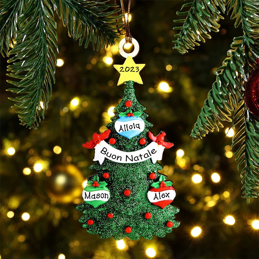 Ornamenti per albero di Natale cuore e uccelo decorazione casa 3 nomi personalizzati