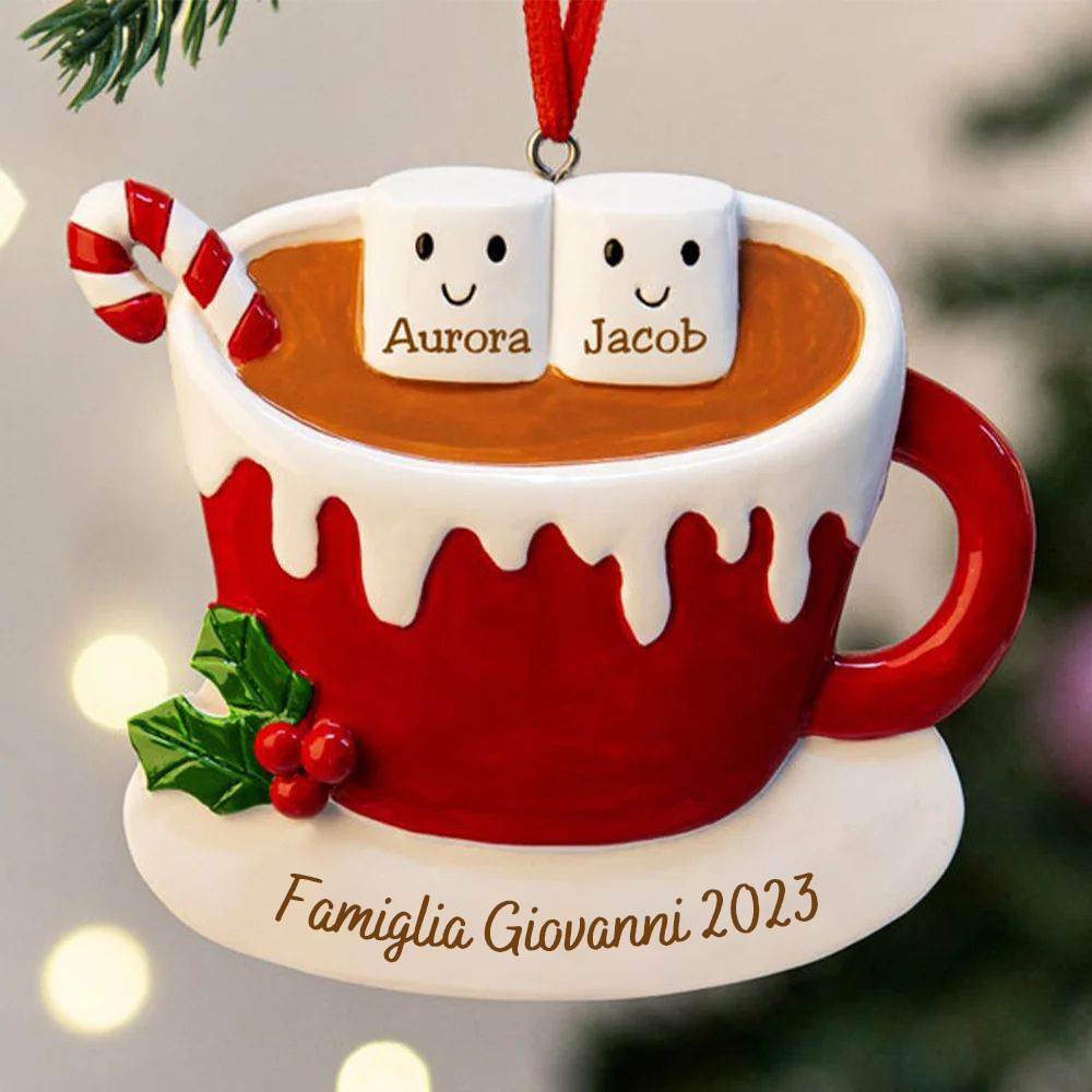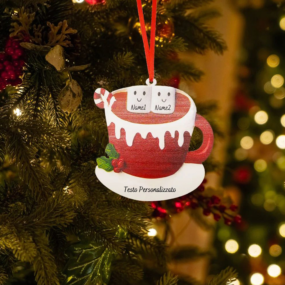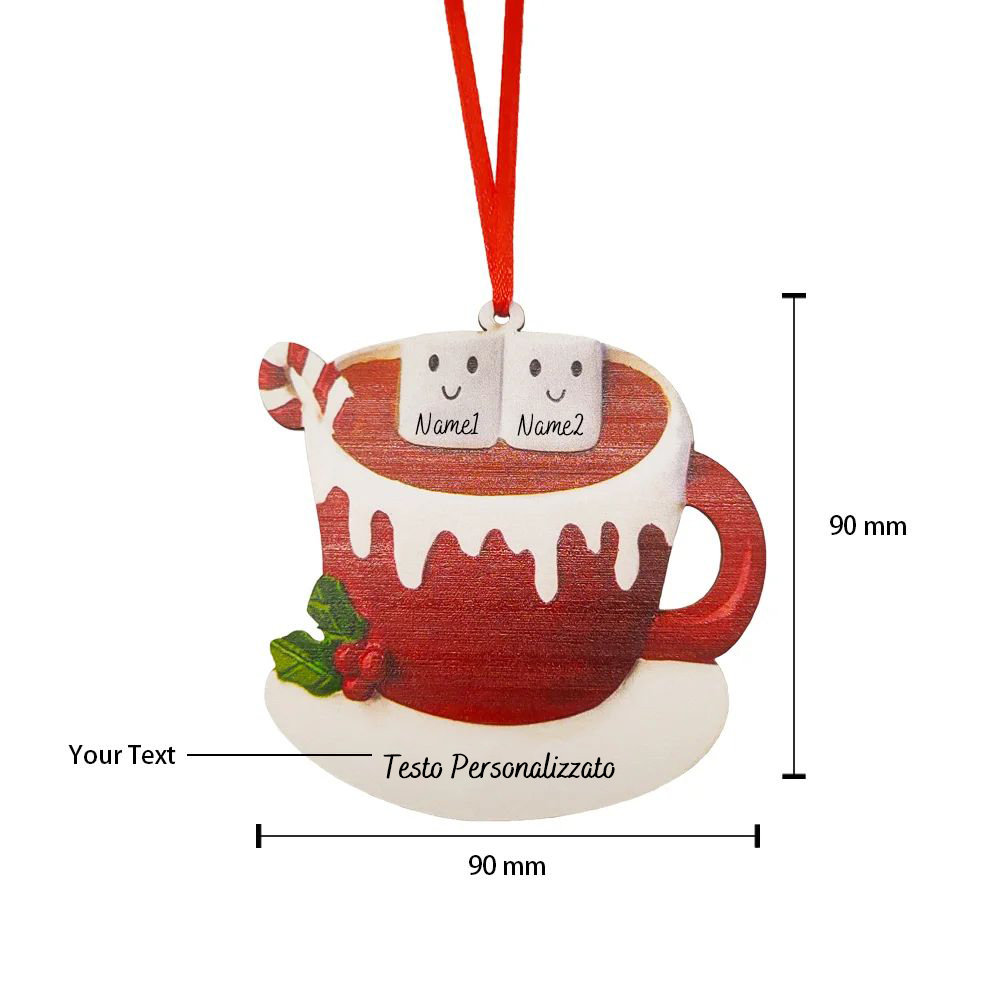 Ornamento Natale albero abeti e pecci caffè e zucchero diversi nomi personalizzati per una famiglia e amici riunione