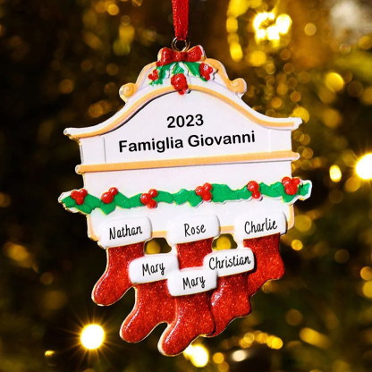 Ornamento Natale albero abeti e pecci diversi nomi personalizzati per una famiglia e amici riunione