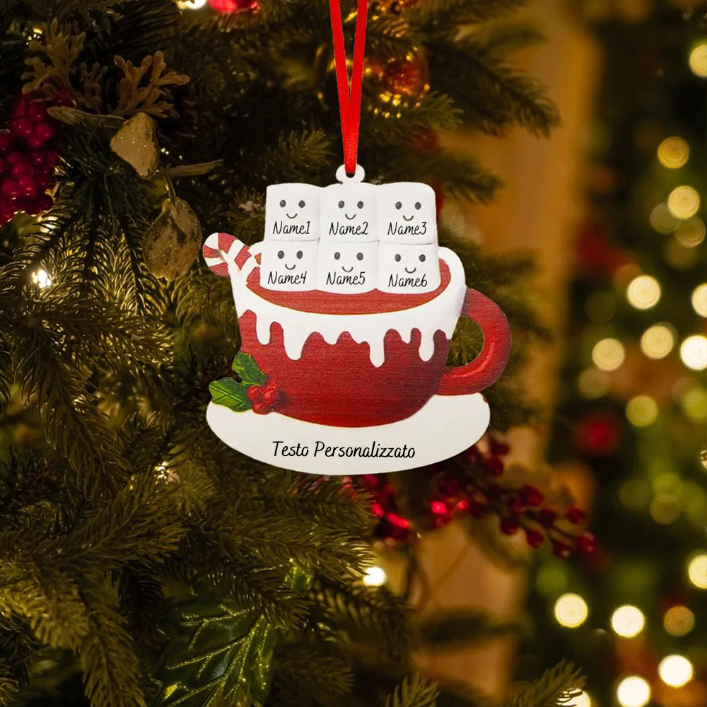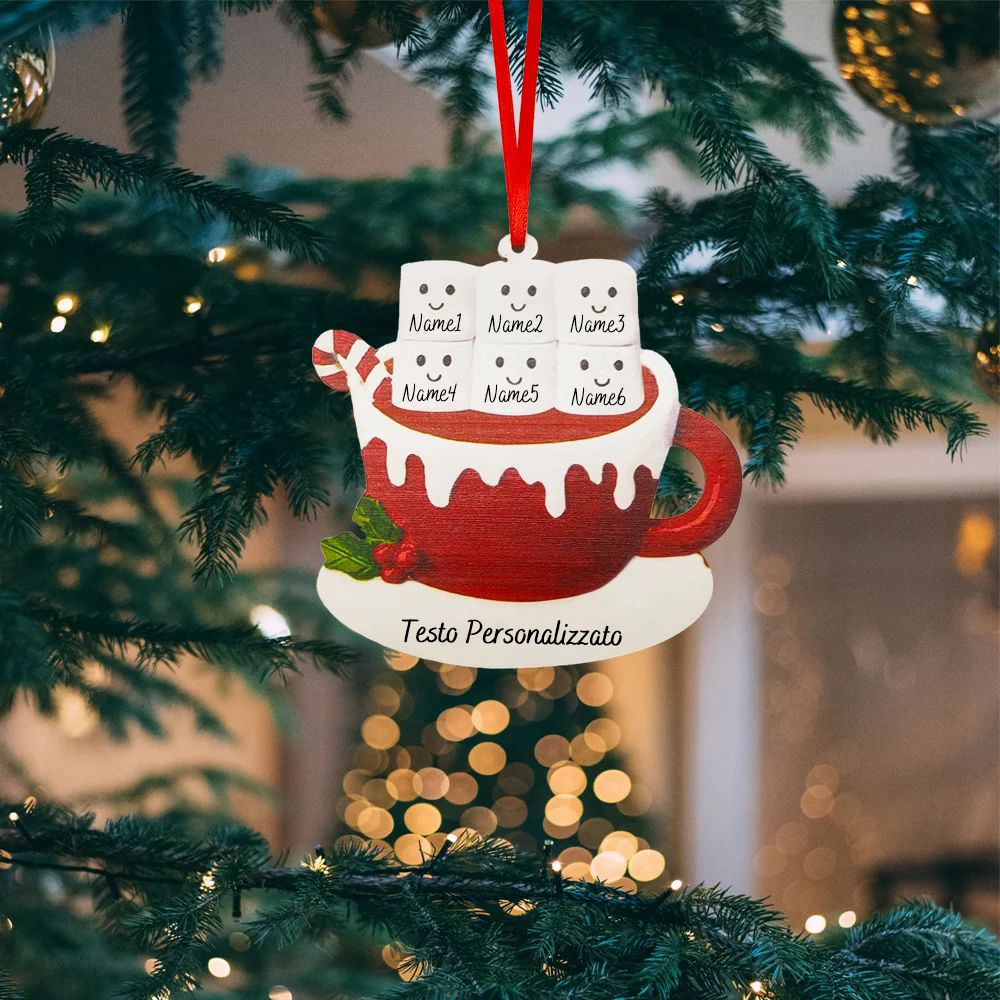 Ornamento Natale albero abeti e pecci diversi nomi personalizzati per una famiglia e amici riunione