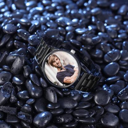 Orologio fotografico personalizzato con nome o messaggio inciso Bracciale in acciaio inossidabile