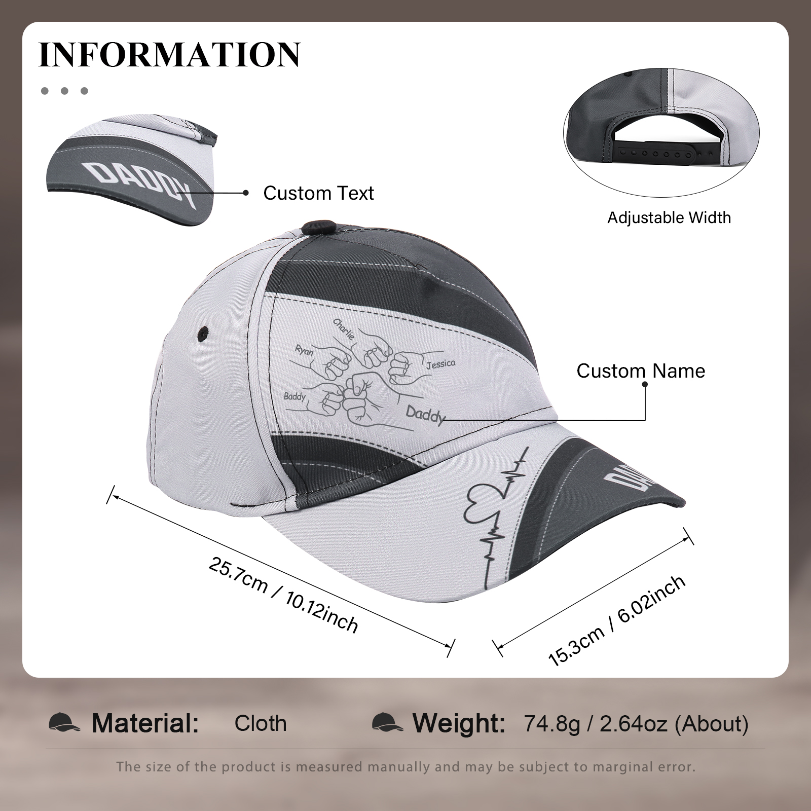 Papà/Nonno-Cappello regorabile pugno a pugno 5 nomi e 1 testo personalizzati regalo per papà/nonno