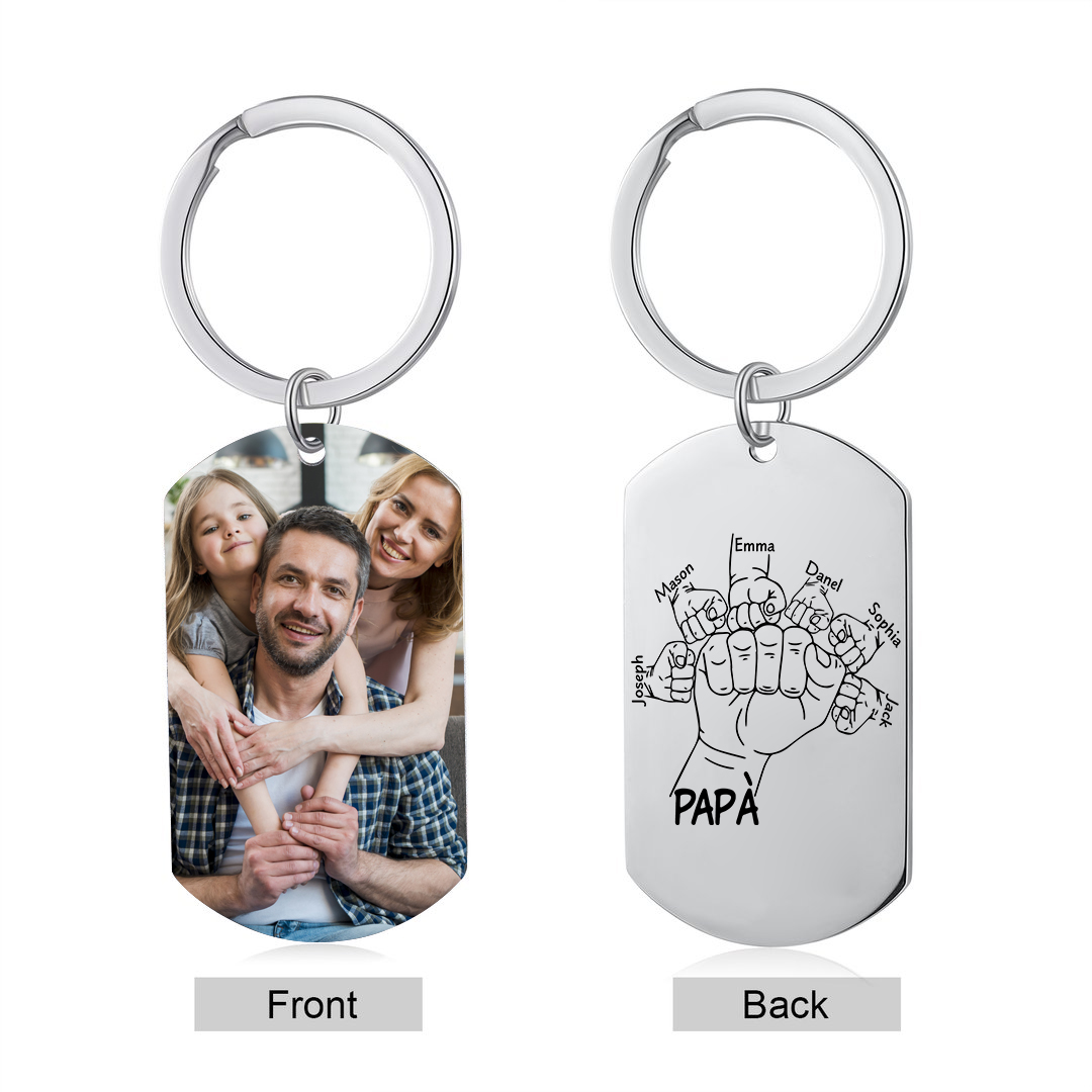 Papà pugno a pugno-Portachiavi 1 foto e 6 nomi personalizzati regalo della festa di padre