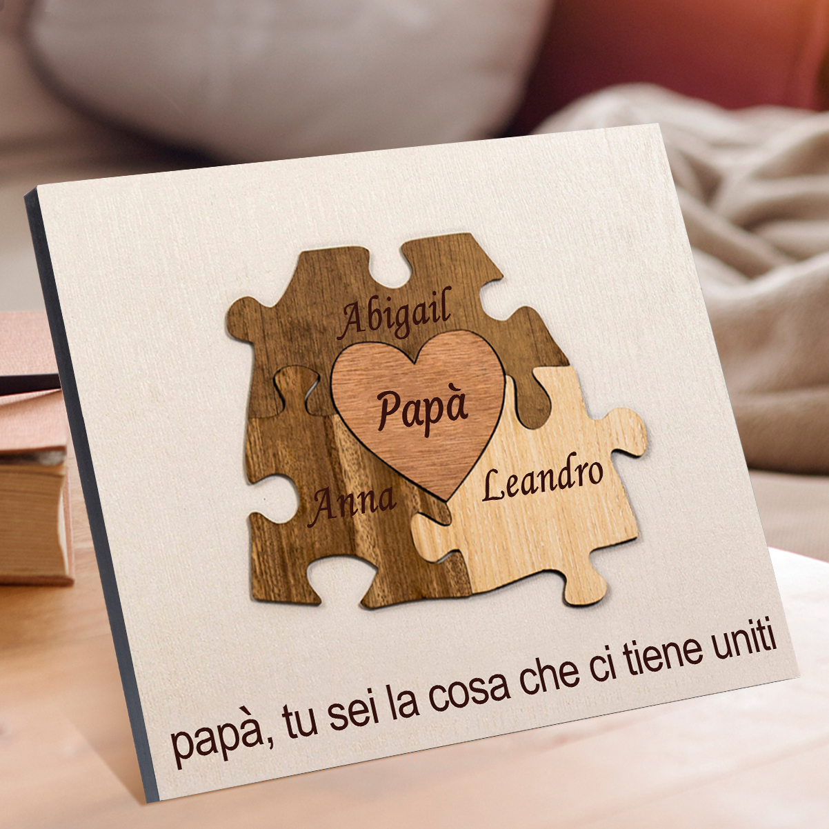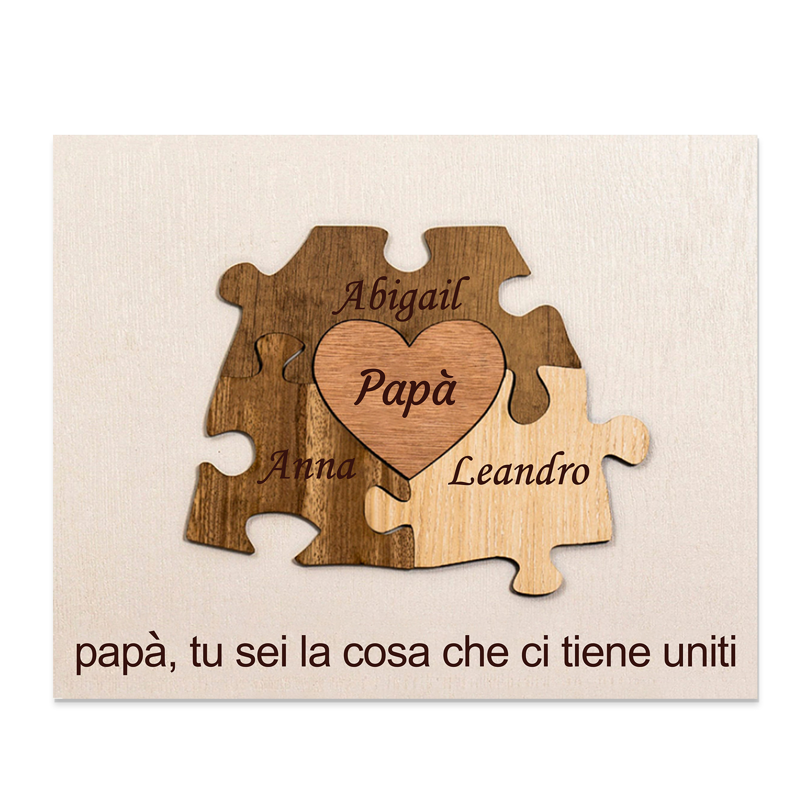 Papà tu sei la cosa che ci tieni uniti-Targa Puzzle di Legno Per papà 3 nomi personalizzati