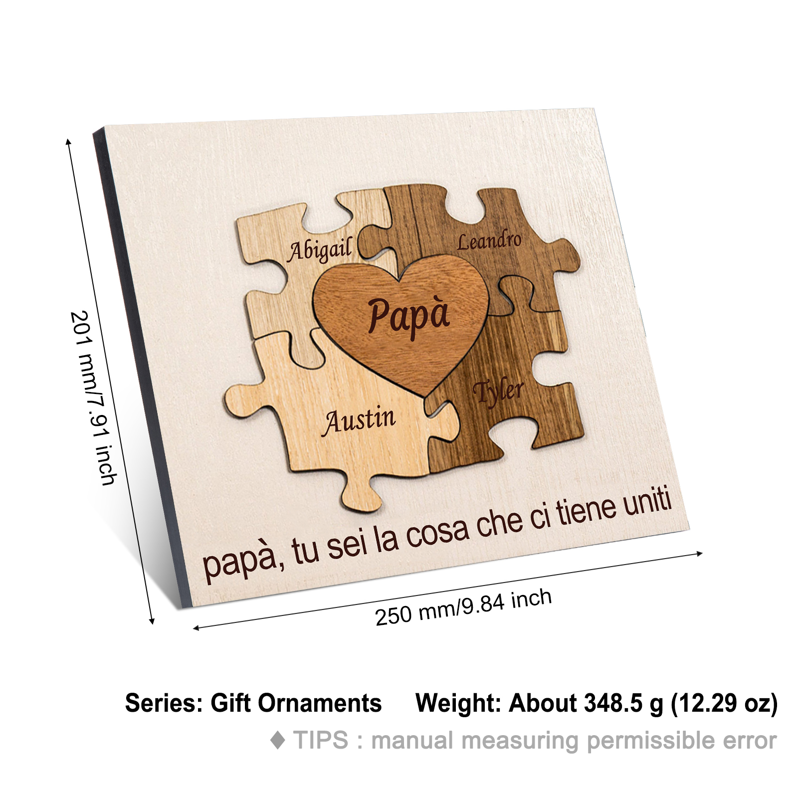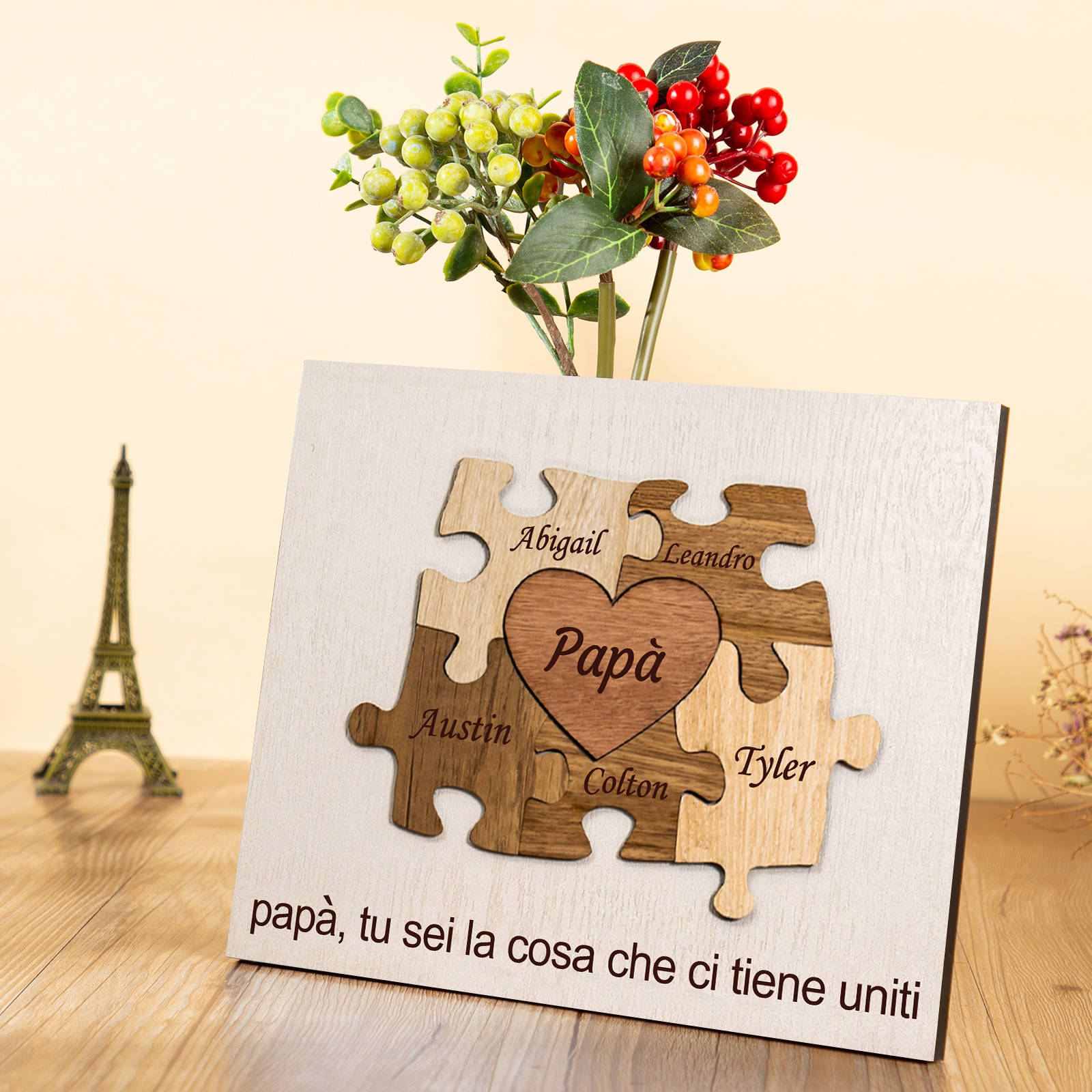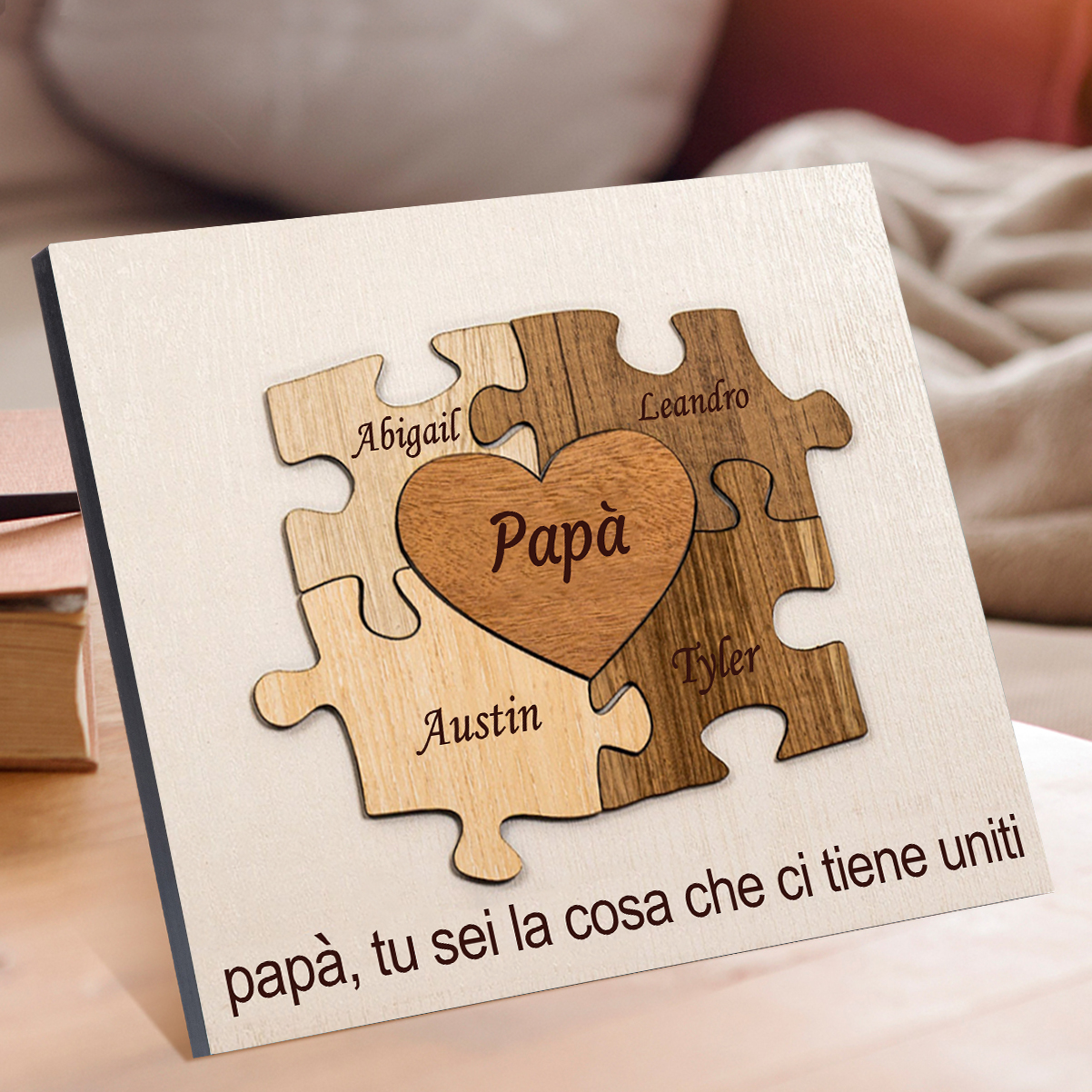 Papà tu sei la cosa che ci tieni uniti-Targa Puzzle di Legno Per papà 5 nomi personalizzati