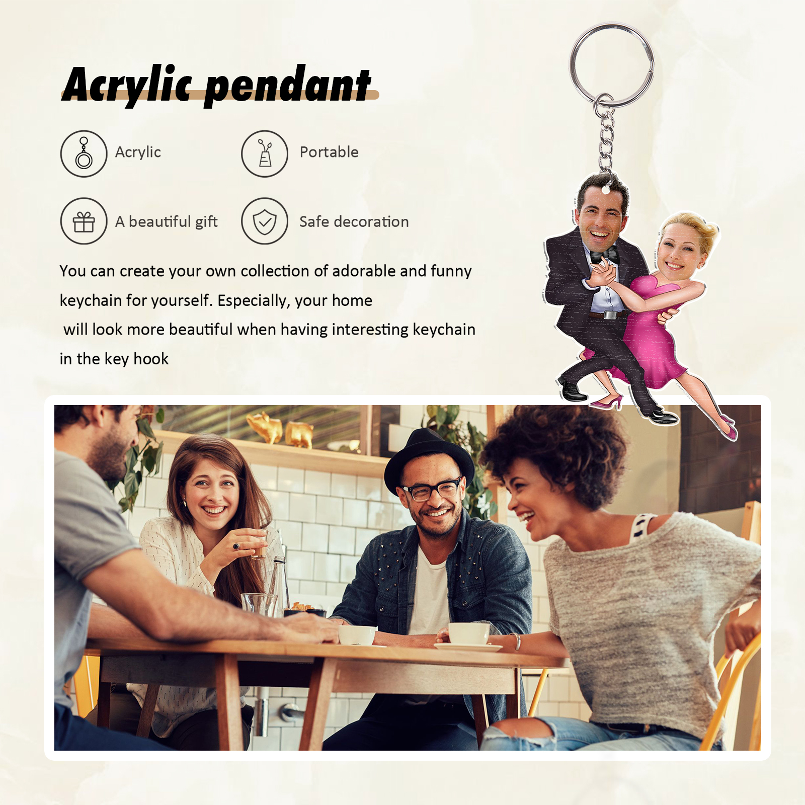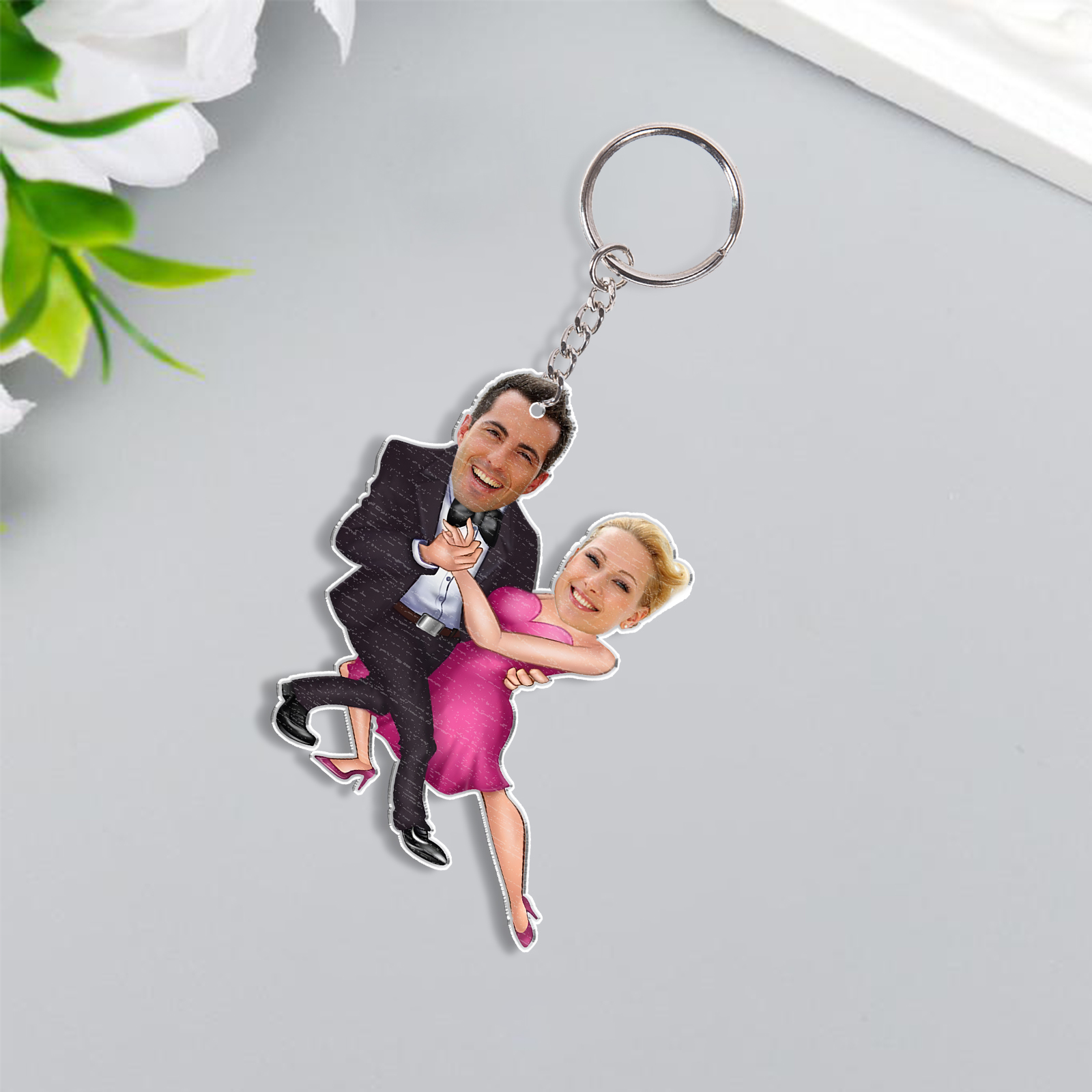 Pendente/Portachiavi ballare insieme con 2 foto personalizzato regalo per coppia
