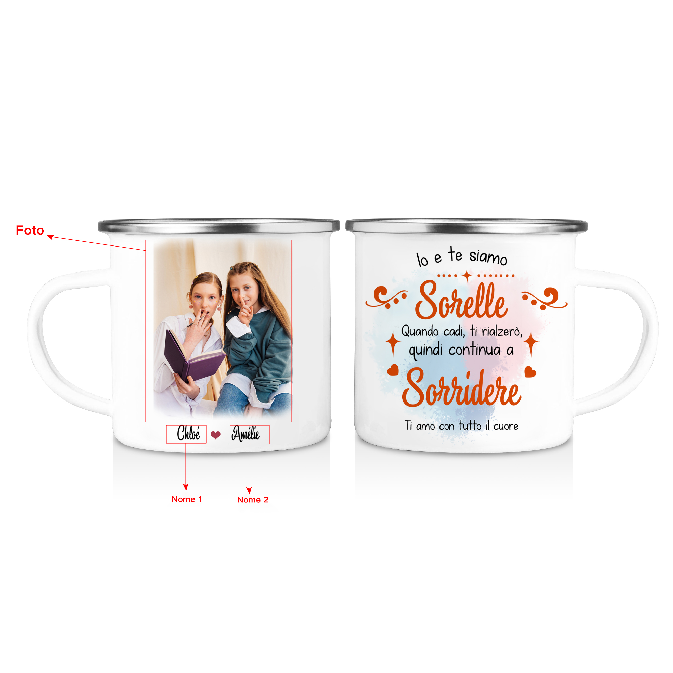 Pensierino per sorella-Tazza personalizzabile con 2 nomi