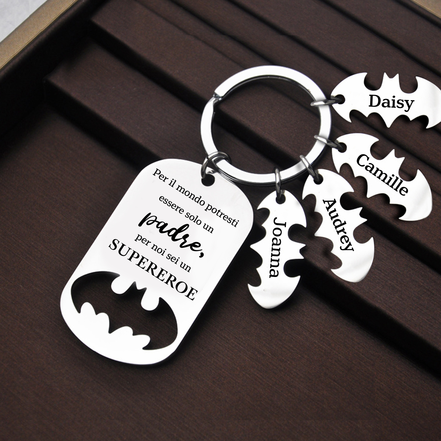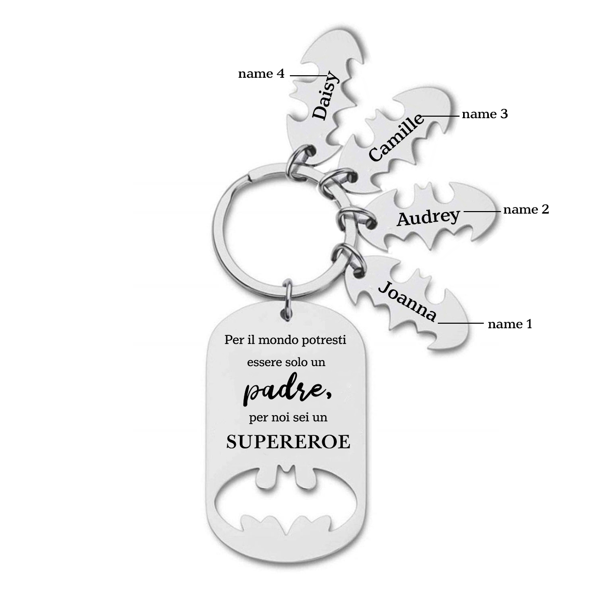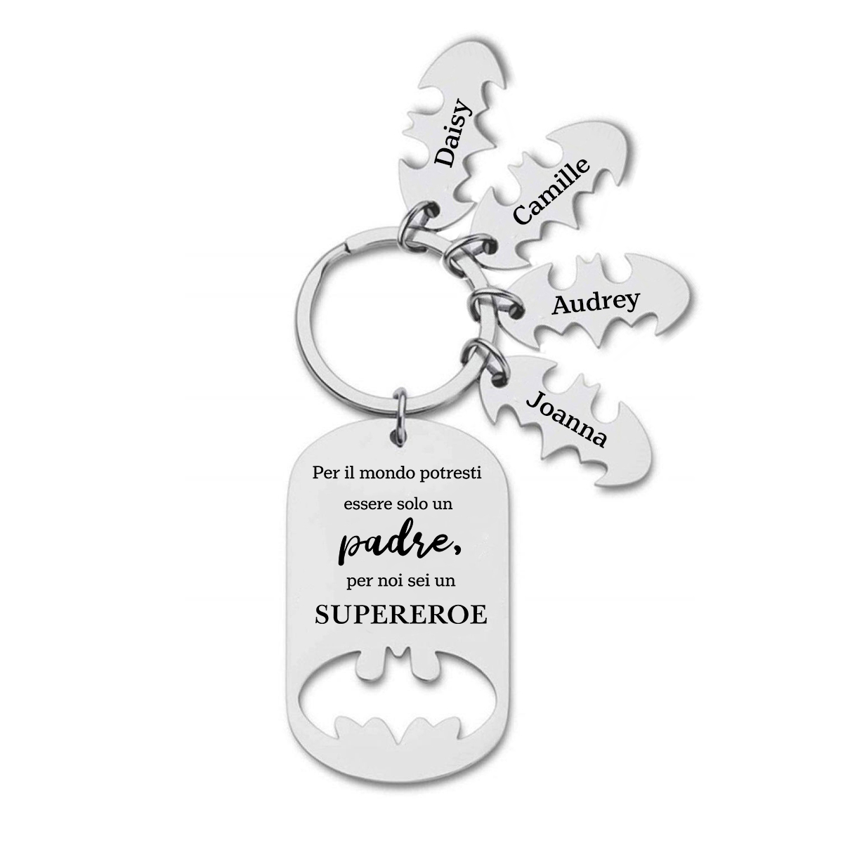 Per noi sei un supereroe-Portachiavi con ciondolo mazza 4 nomi per papà regalo della festa di padre
