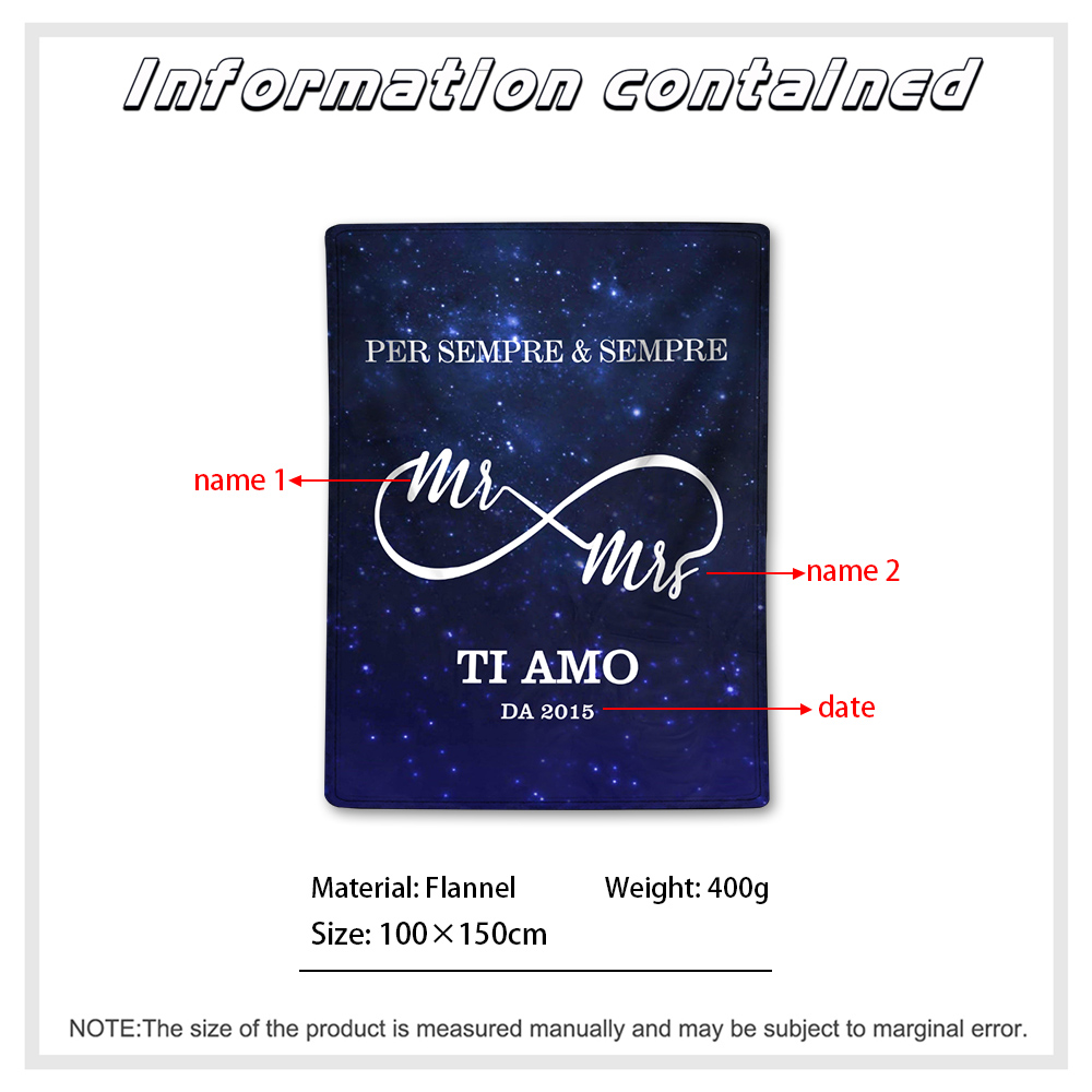 PER SEMPRE & SEMPRE TI AMO-Coperta per coppia 2 nomi personalizzabili