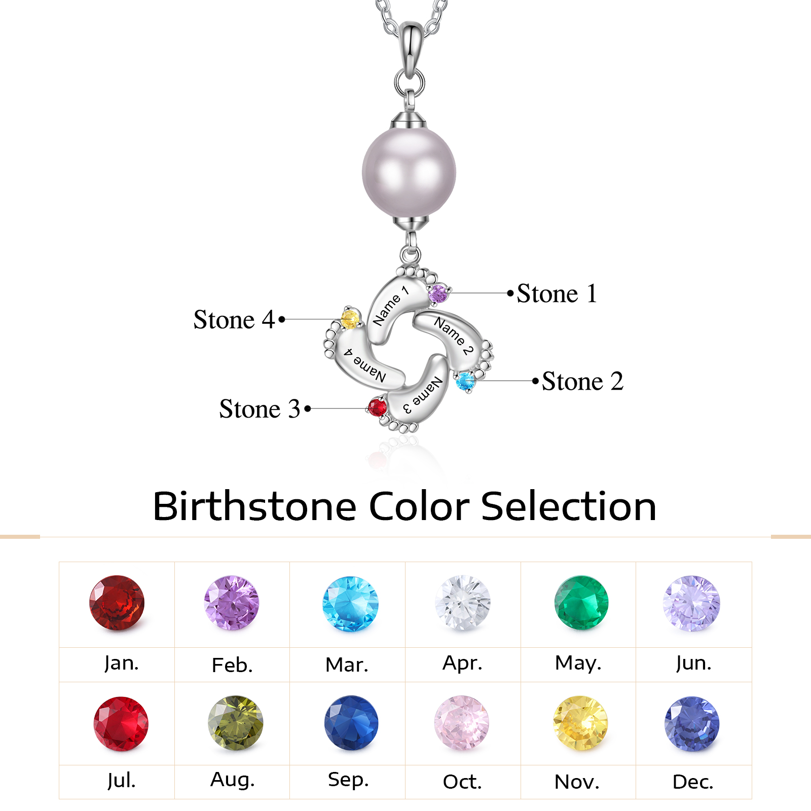 Piedino del mio cuore...collana personalizzabile con incisione 4 nomi gemma e corallo