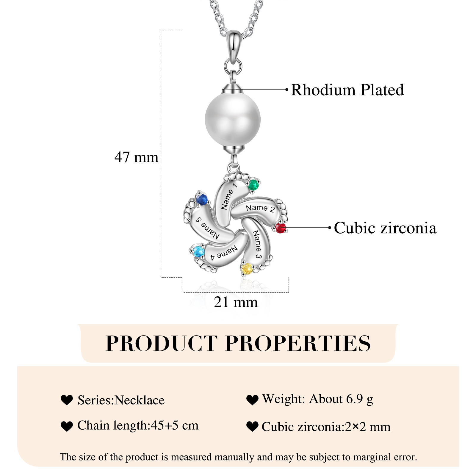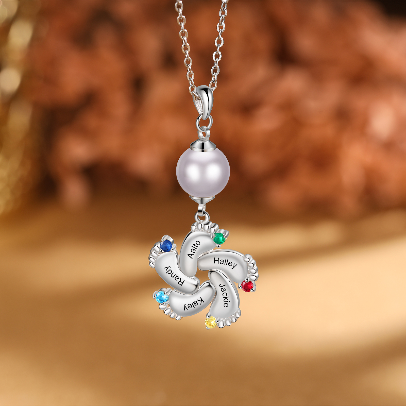 Piedino del mio cuore...collana personalizzabile con incisione 5 nomi gemma e corallo