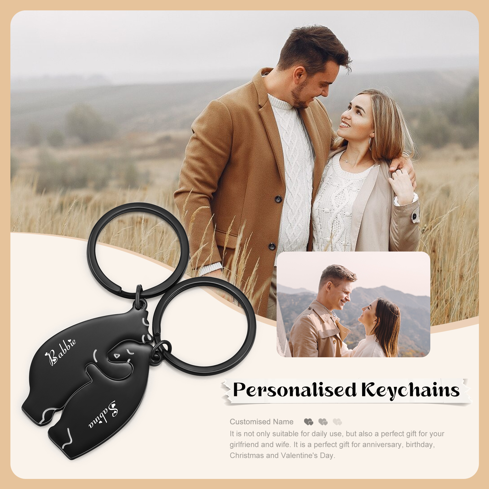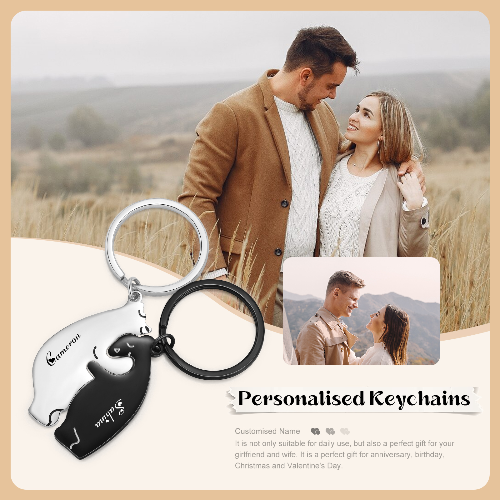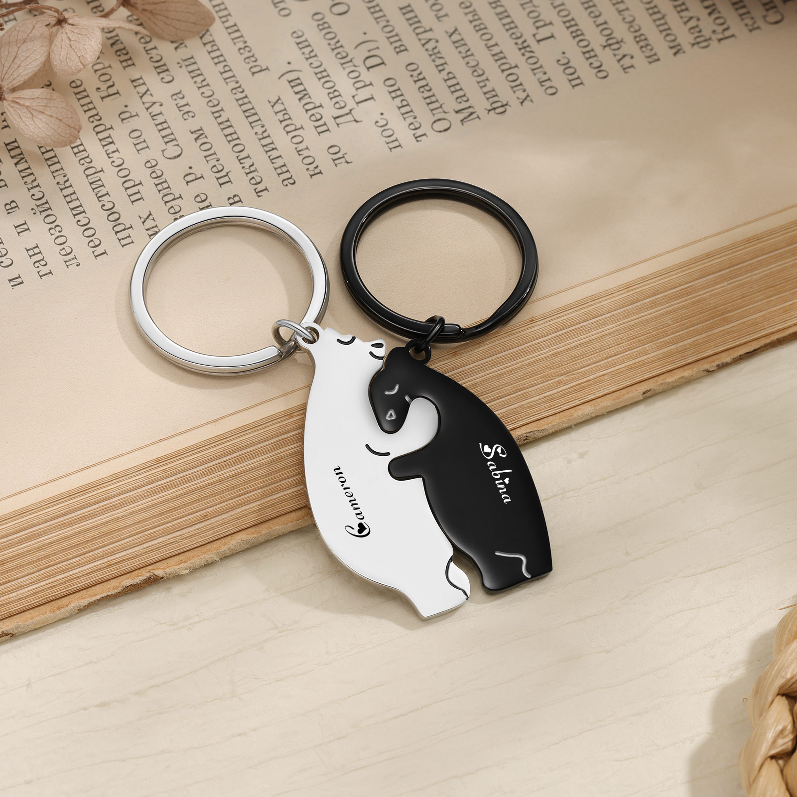 Portachiavi 2PCS con 2 nomi personalizzati regalo per coppia e San valentino