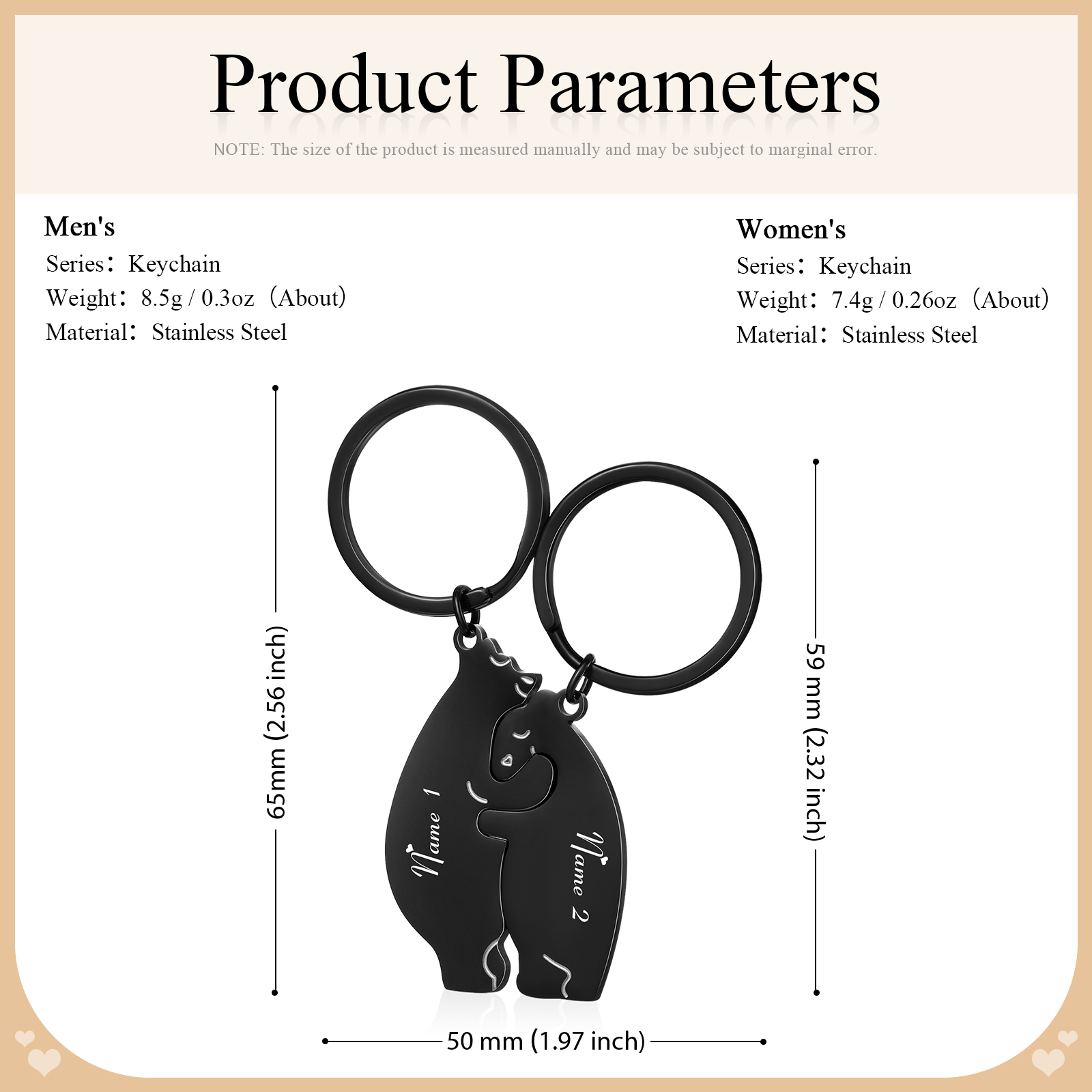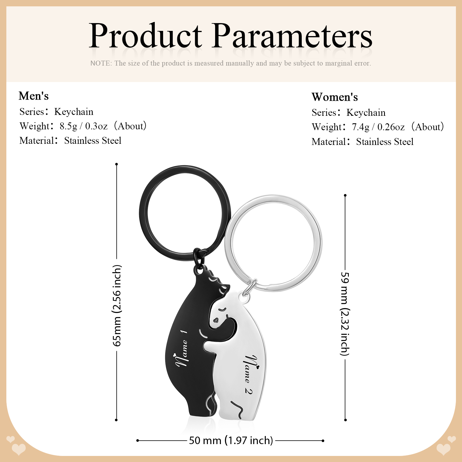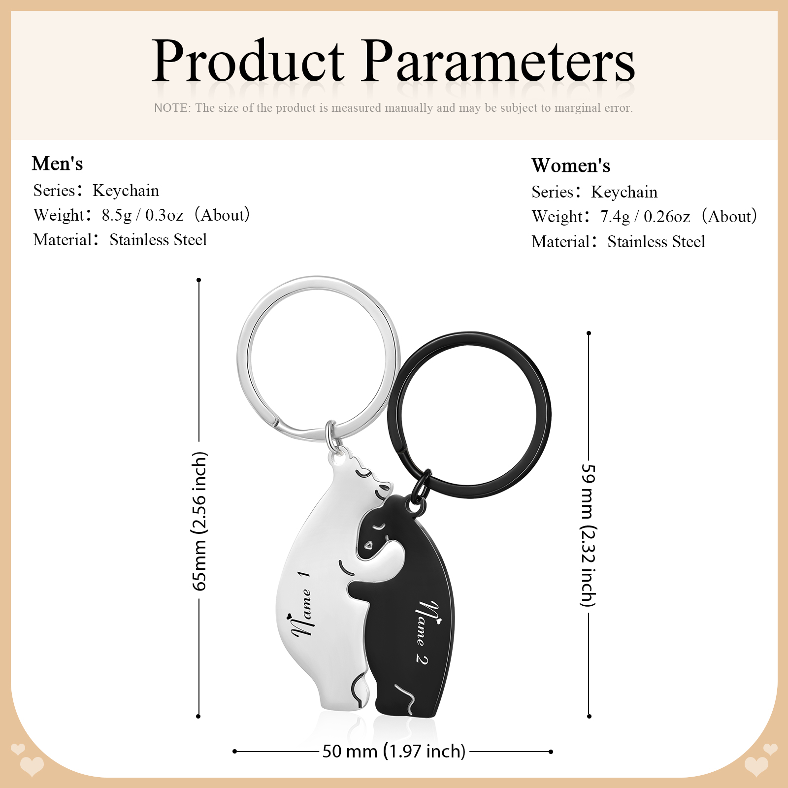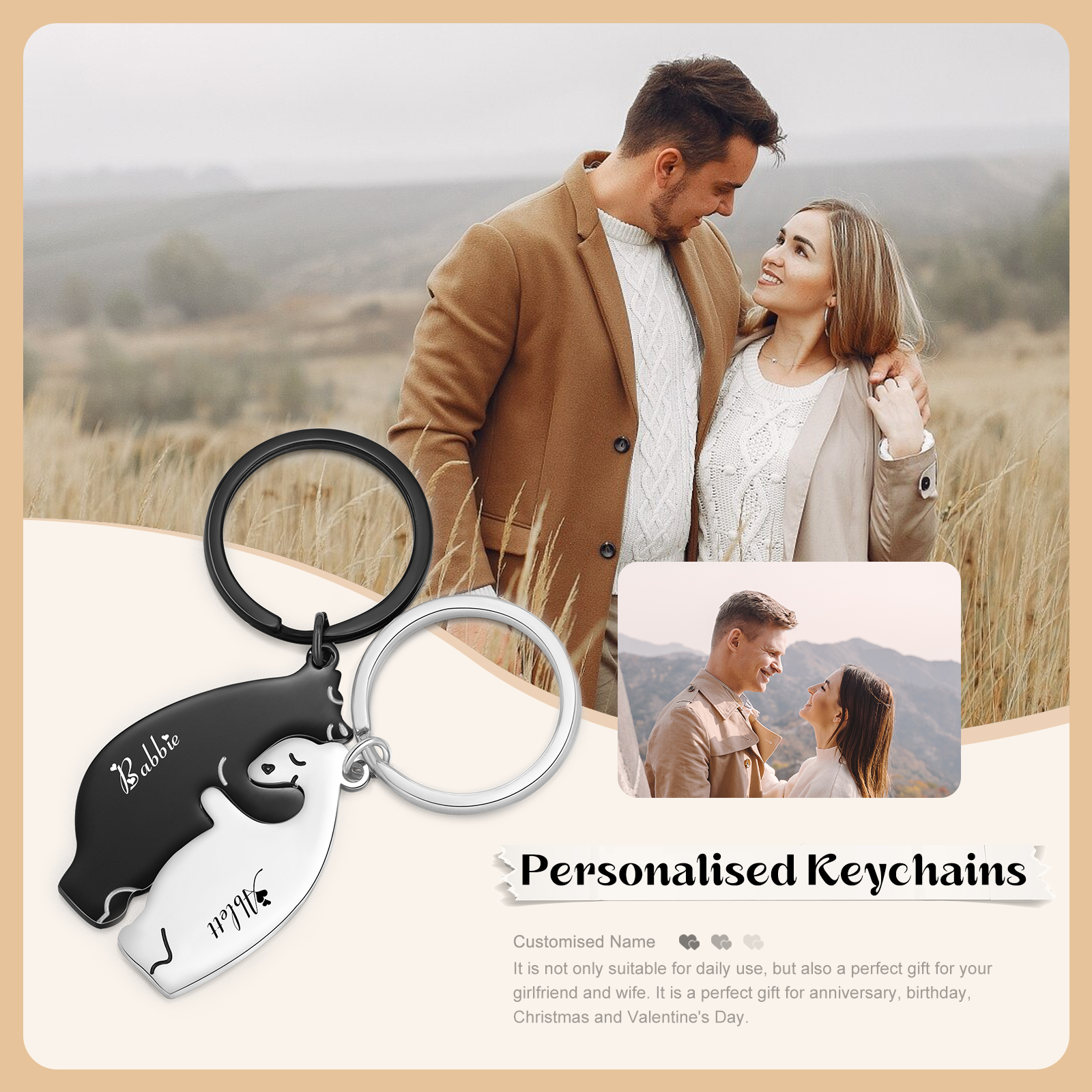 Portachiavi 2PCS con 2 nomi personalizzati regalo per coppia e San valentino