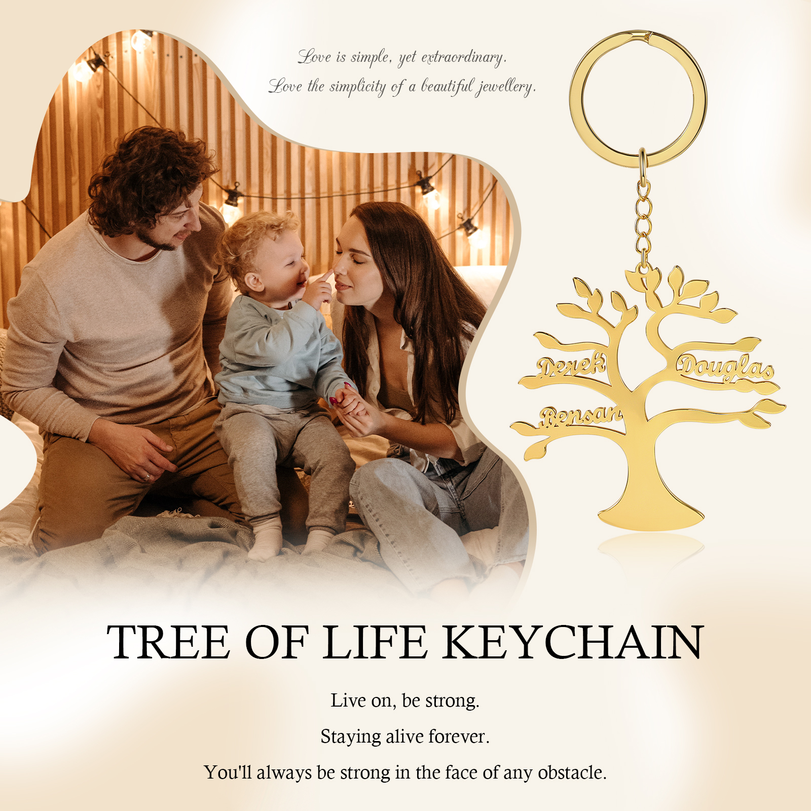 Portachiavi albero della vita con 3 nomi personalizzati regalo per famiglia