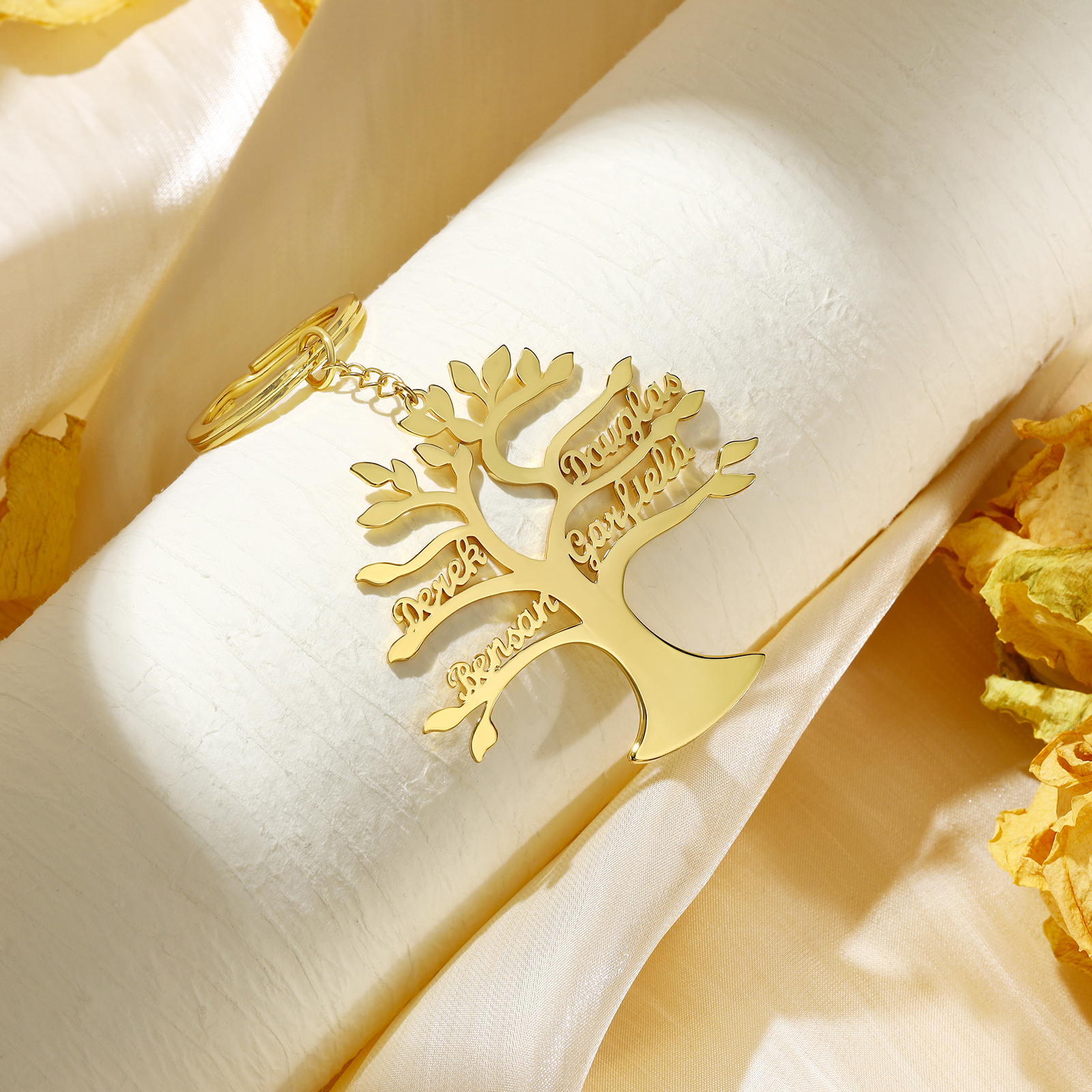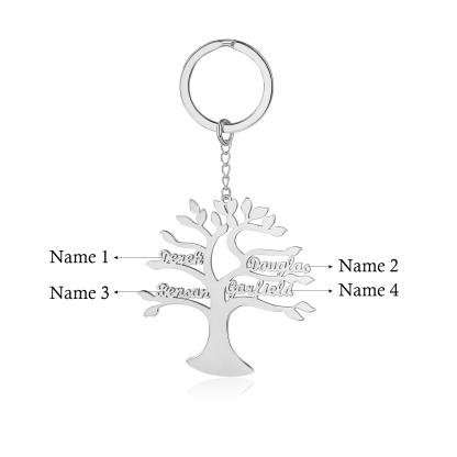 Portachiavi albero della vita con 4 nomi personalizzati regalo per famiglia
