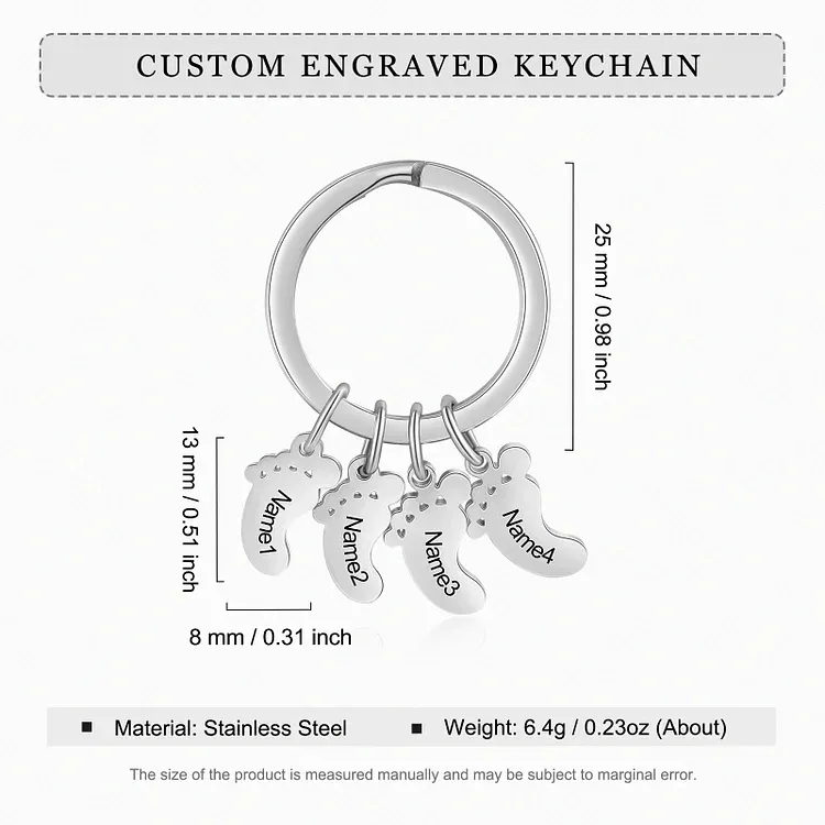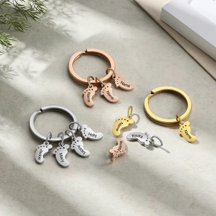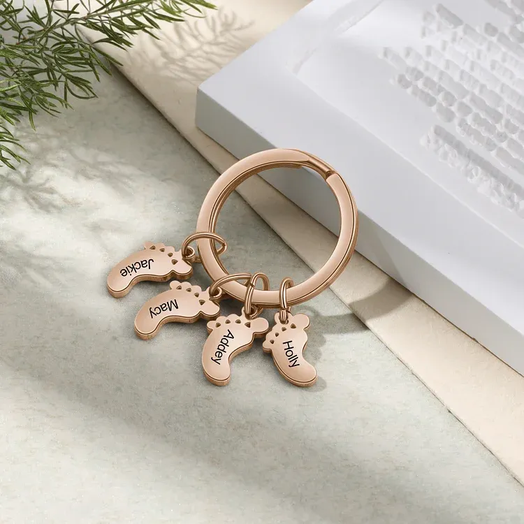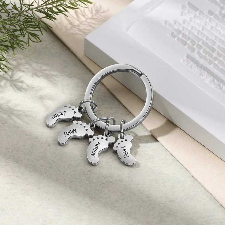 Portachiavi Bimbo piede 4 nomi personalizzati regalo della festa di padre