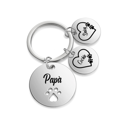 Portachiavi cerchio impronta di zampa con ciondolo di cuore nome 2 nomi e 1 testo personalizzati