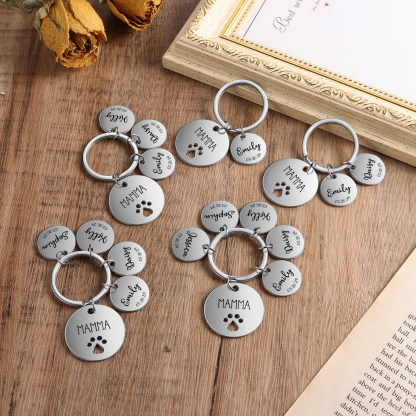 Portachiavi cerchio impronta di zampa con ciondolo di nome 1 nome e 1 testo e 1 data personalizzati