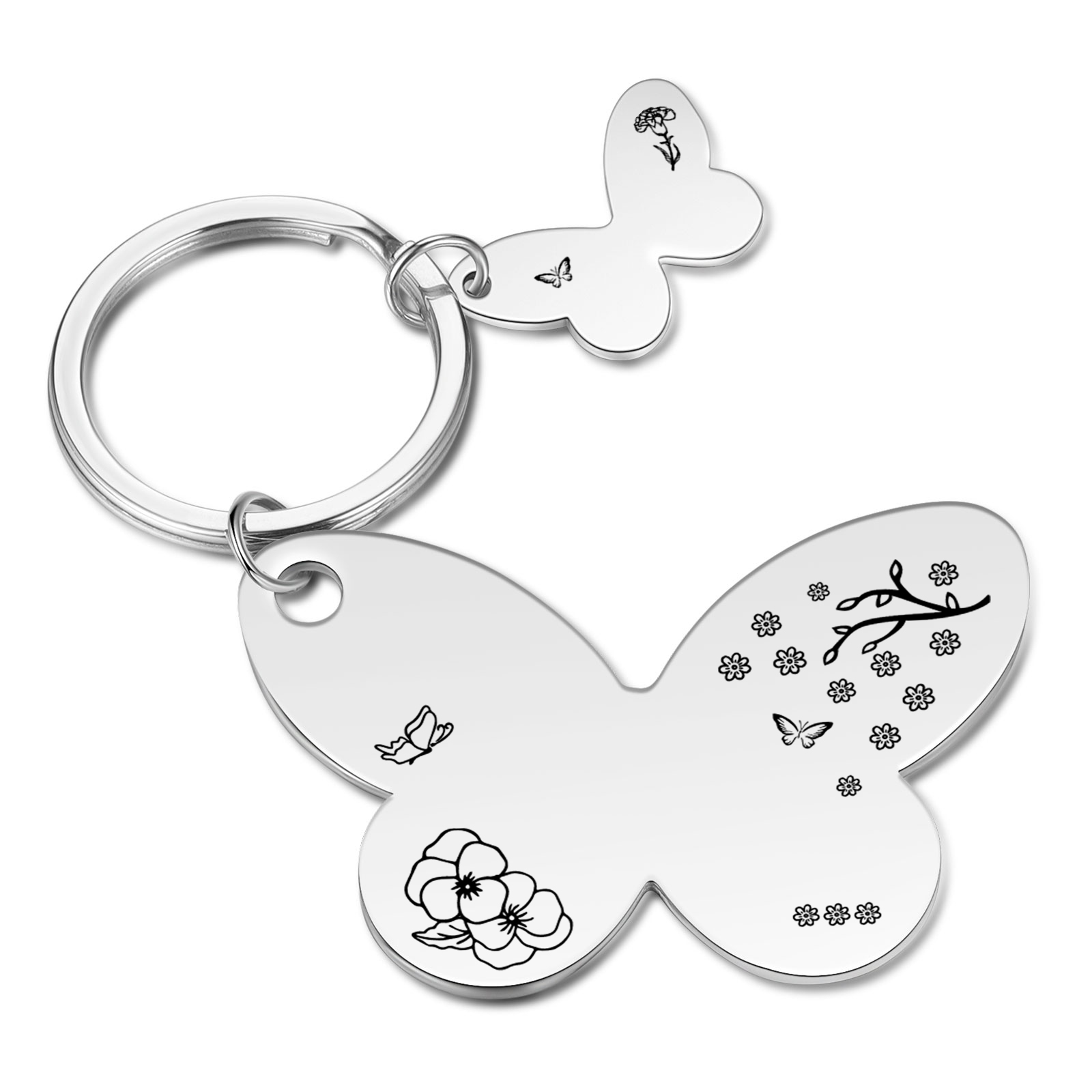 Questa mamma appartiene a-Portachiavi con ciondolo di farfalla con 1 nome e 1 fiore di nascita e 1 testo personalizzati