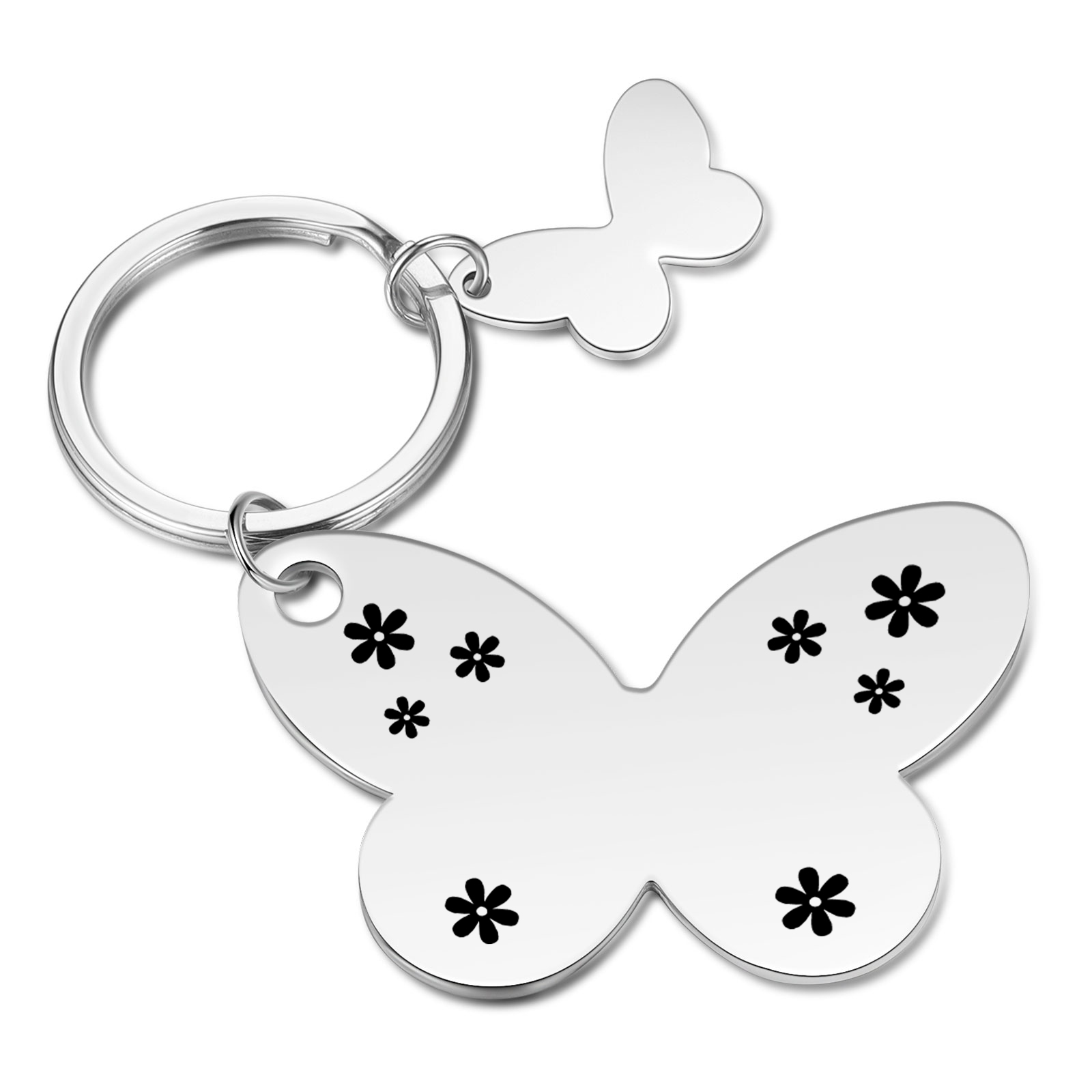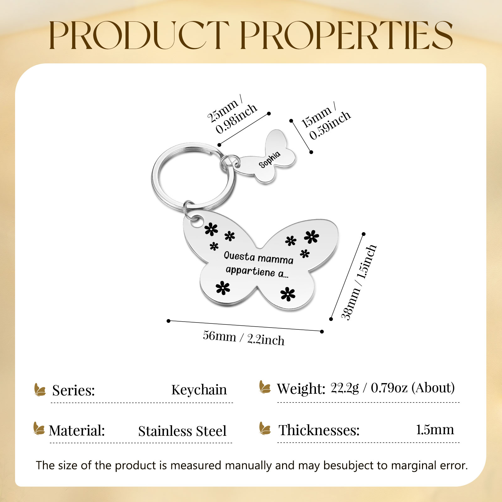 Questa mamma Appartiene a-Portachiavi con ciondolo di farfalla e fiori con 1 nome e 1 testo personalizzati