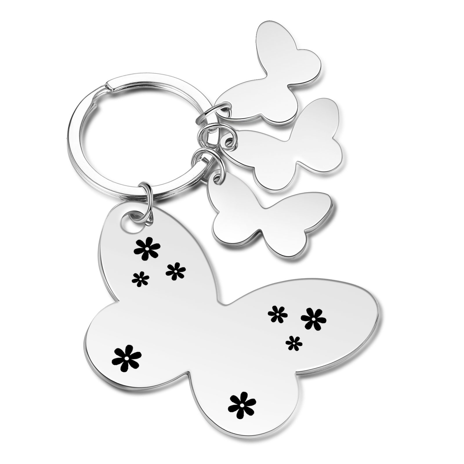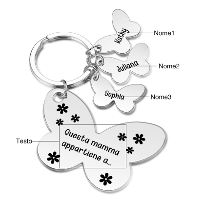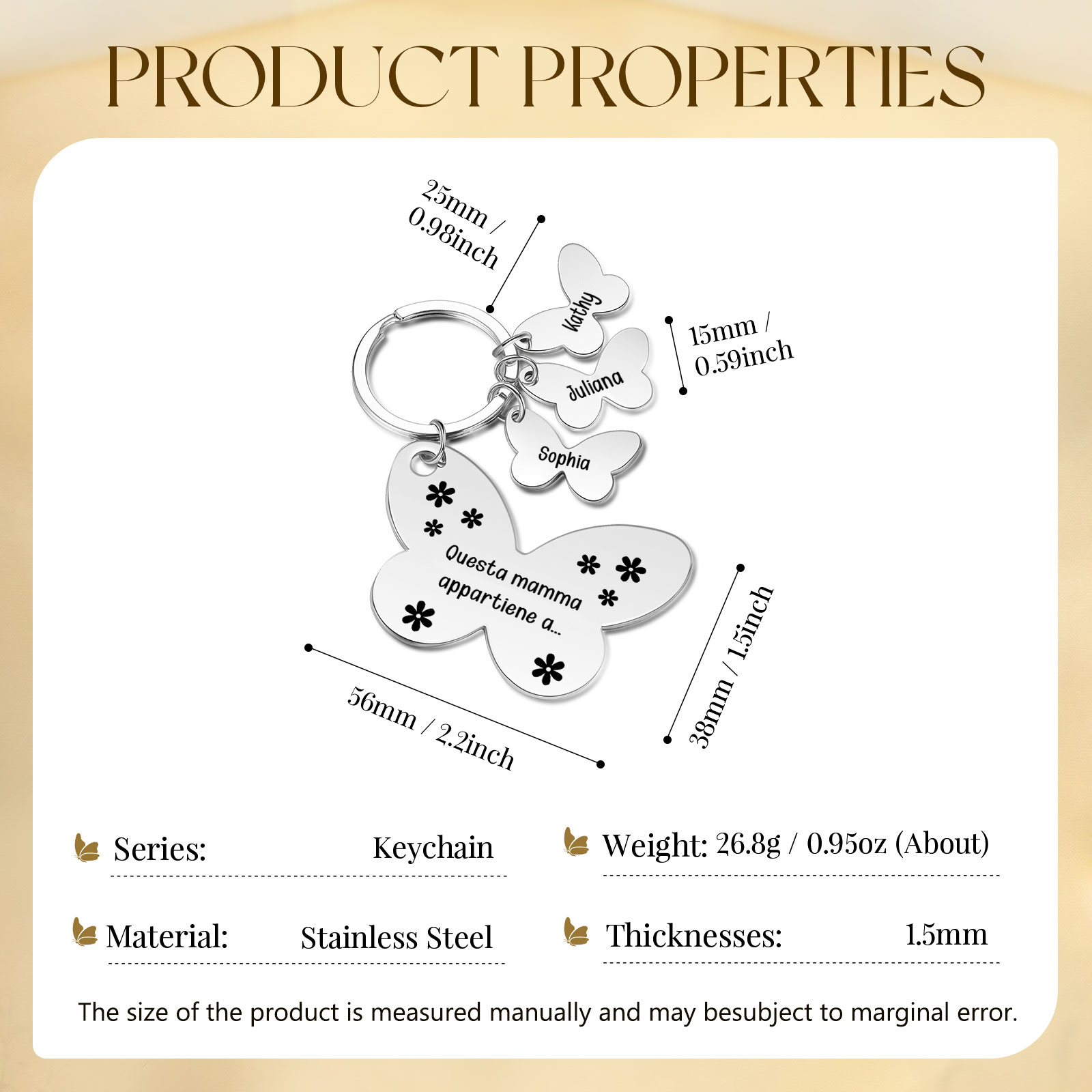 Questa mamma Appartiene a-Portachiavi con ciondolo di farfalla e fiori con 3 nomi e 1 testo personalizzati