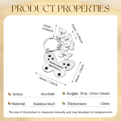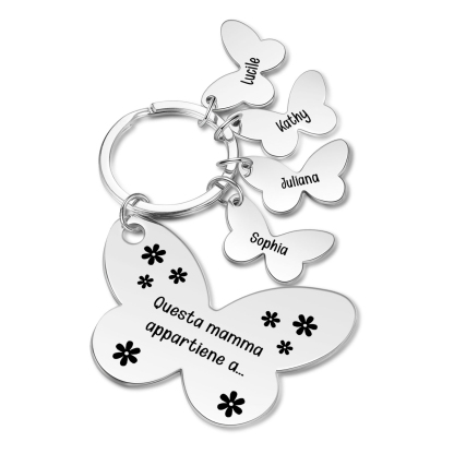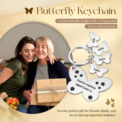 Questa mamma Appartiene a-Portachiavi con ciondolo di farfalla e fiori con 4 nomi e 1 testo personalizzati