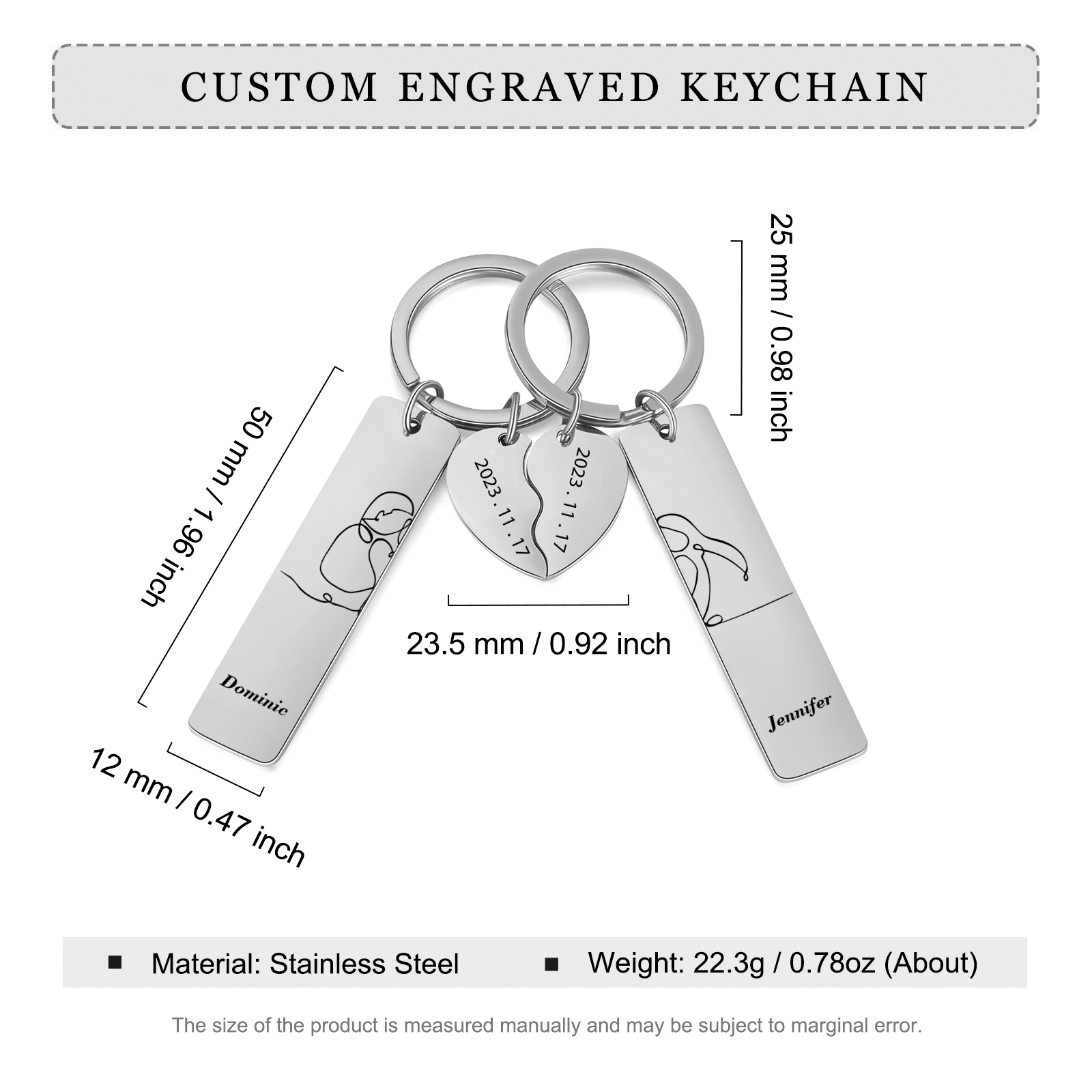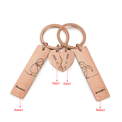 Portachiavi con cuore abbinati 2 nomi e 2 date Personalizzati-Incisione per amore