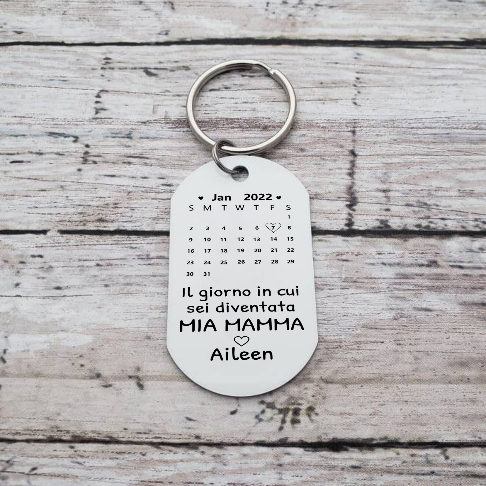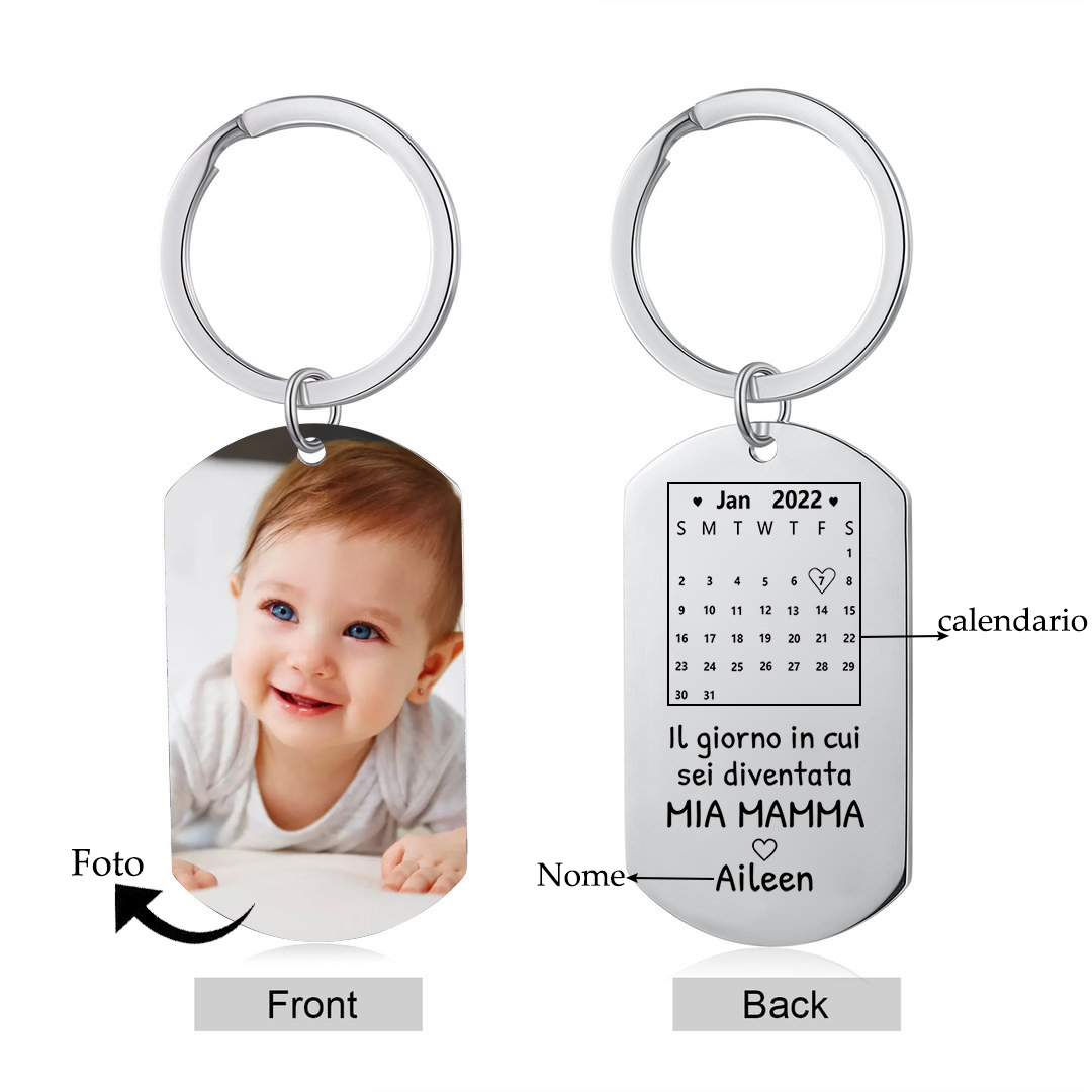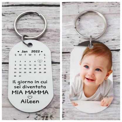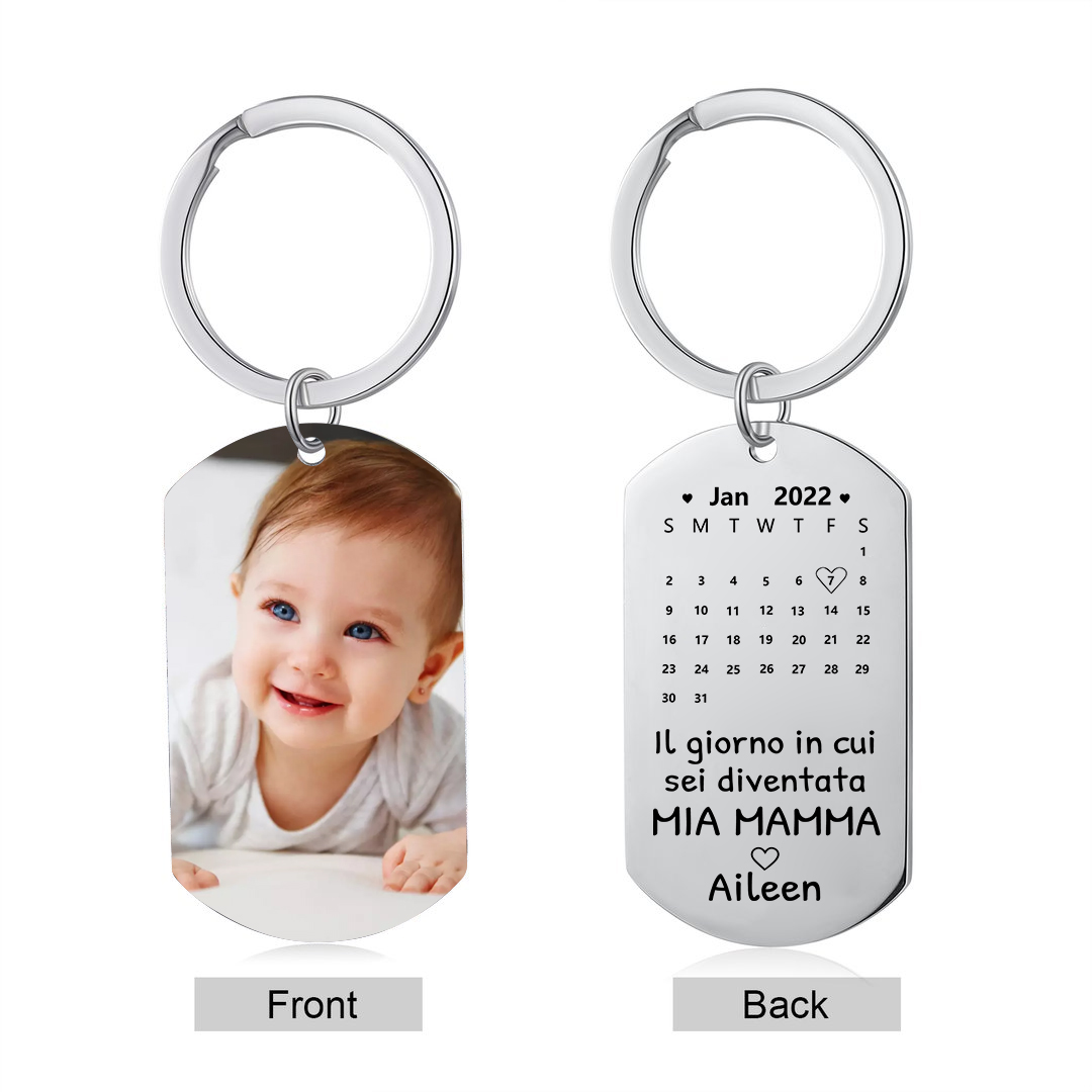Portachiavi con data di calendario 1 foto e 1 nome personalizzati regalo per mamma/nonna