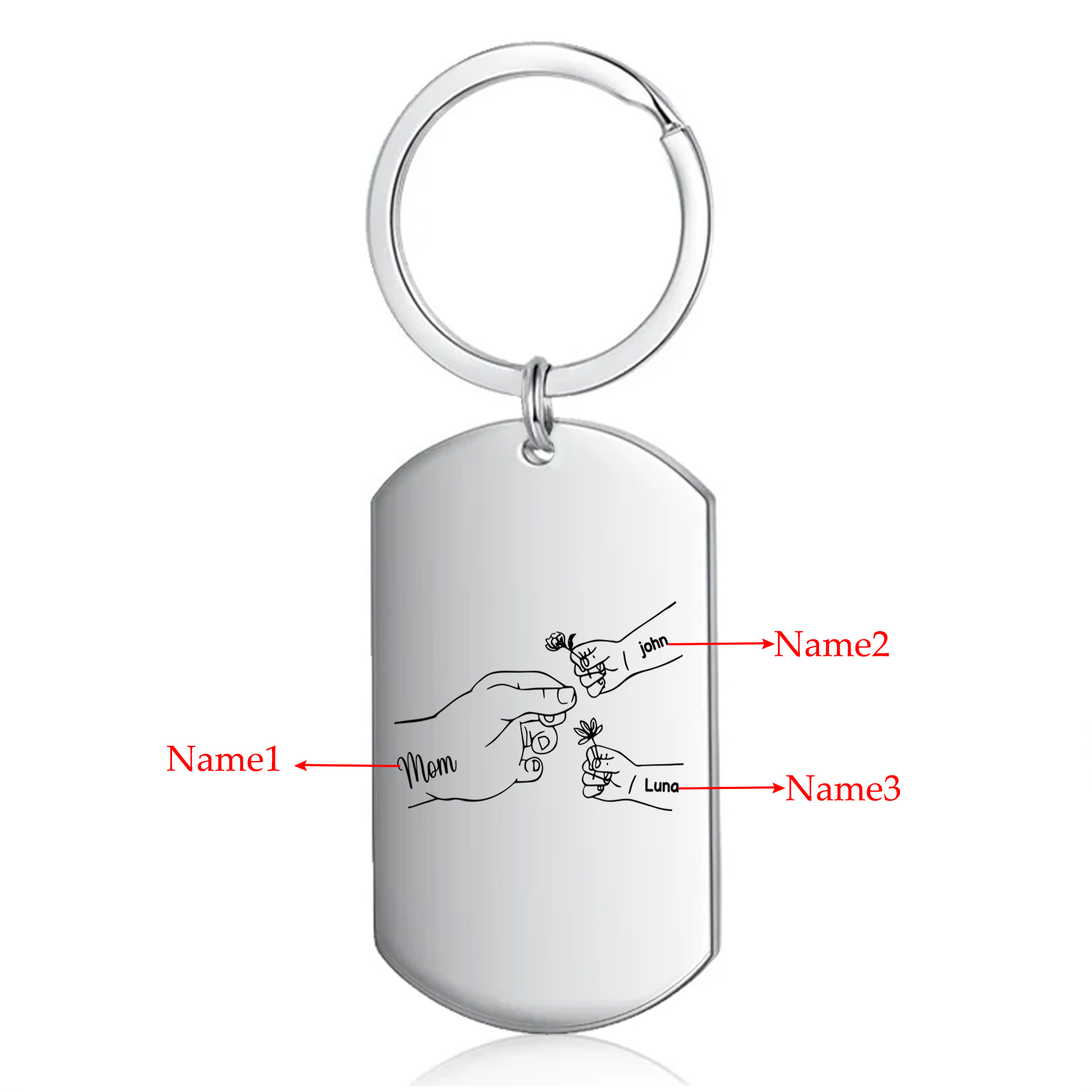 Portachiavi con mano passando il fiore 3 nomi personalizzati regalo per mamma/nonna