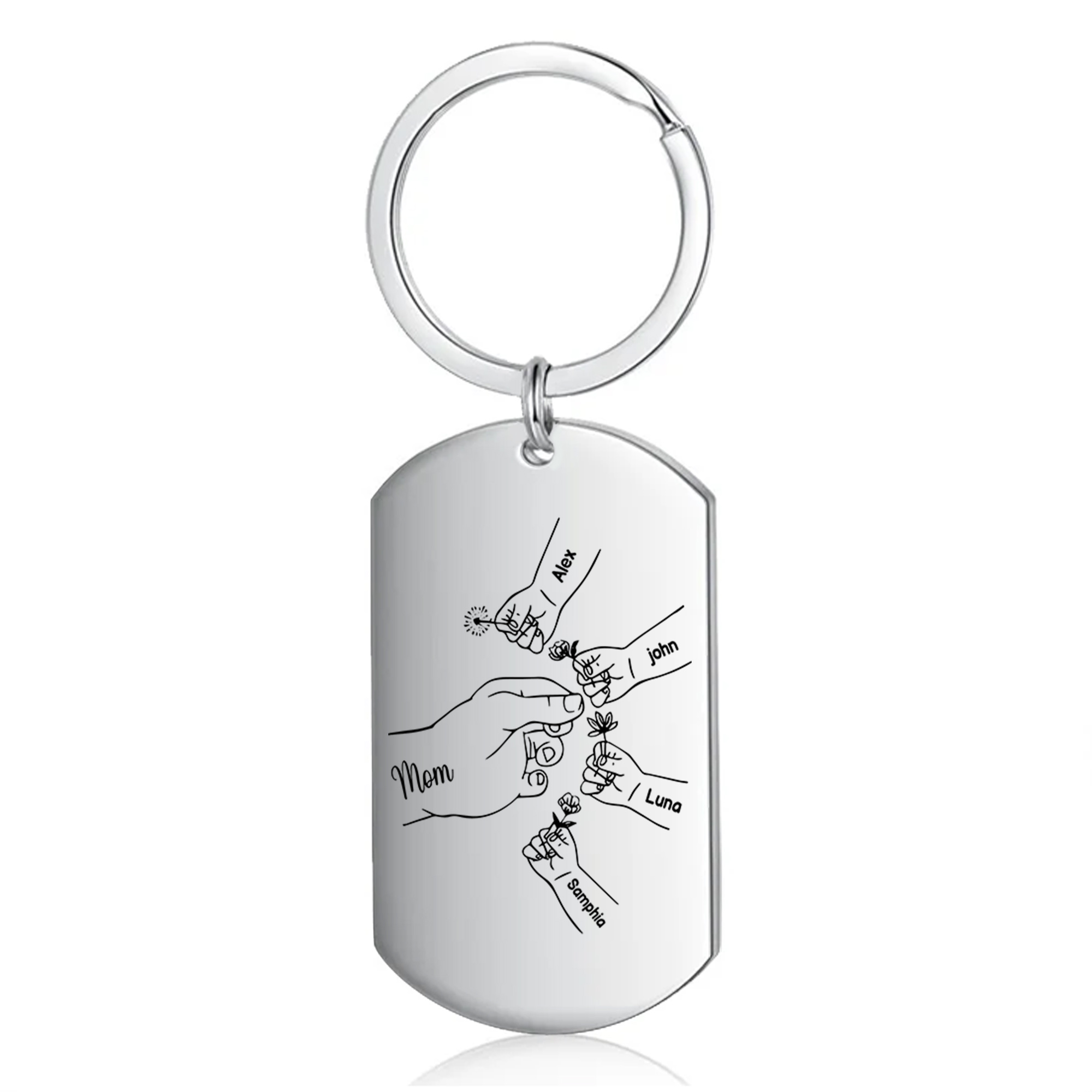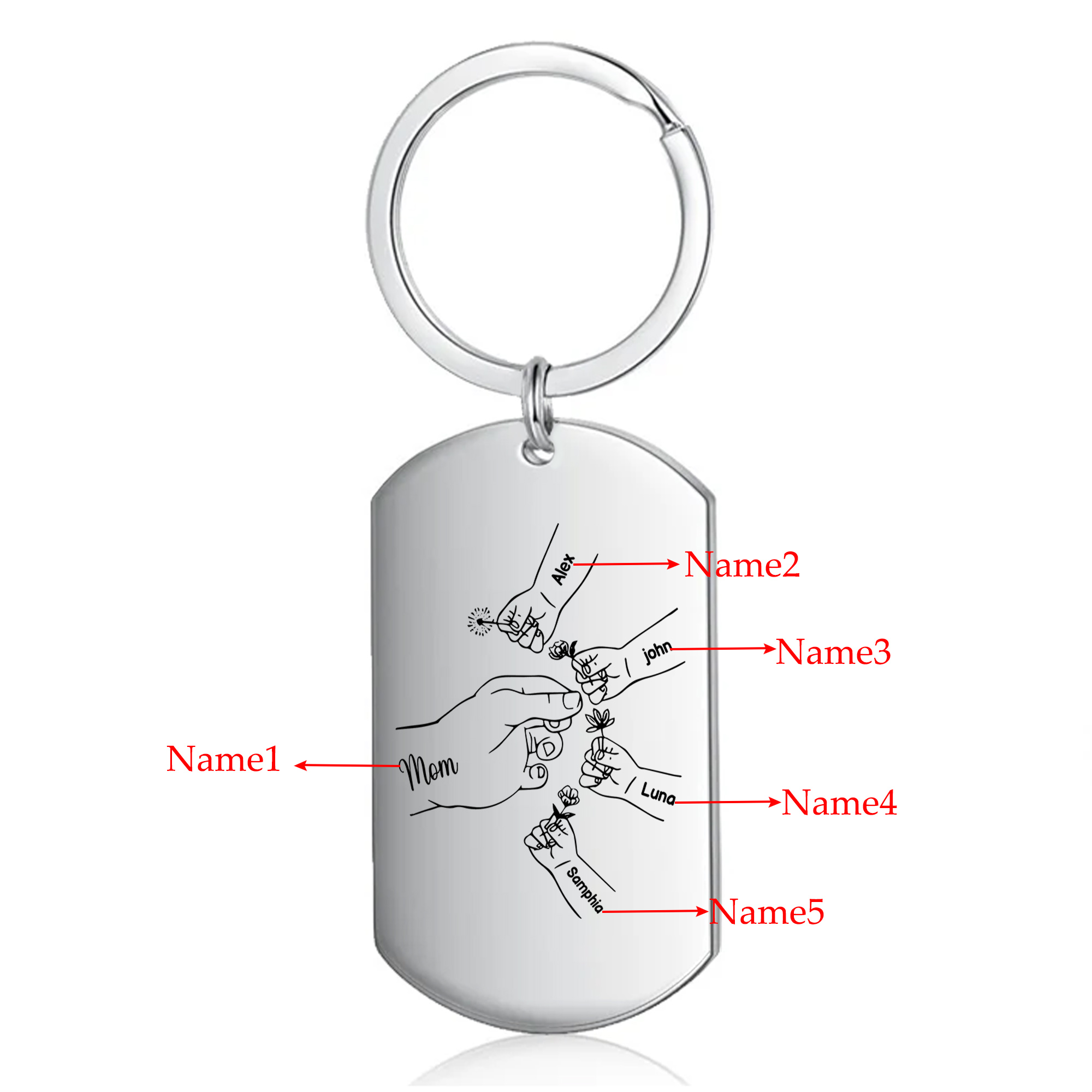 Portachiavi con mano passando il fiore 5 nomi personalizzati regalo per mamma/nonna