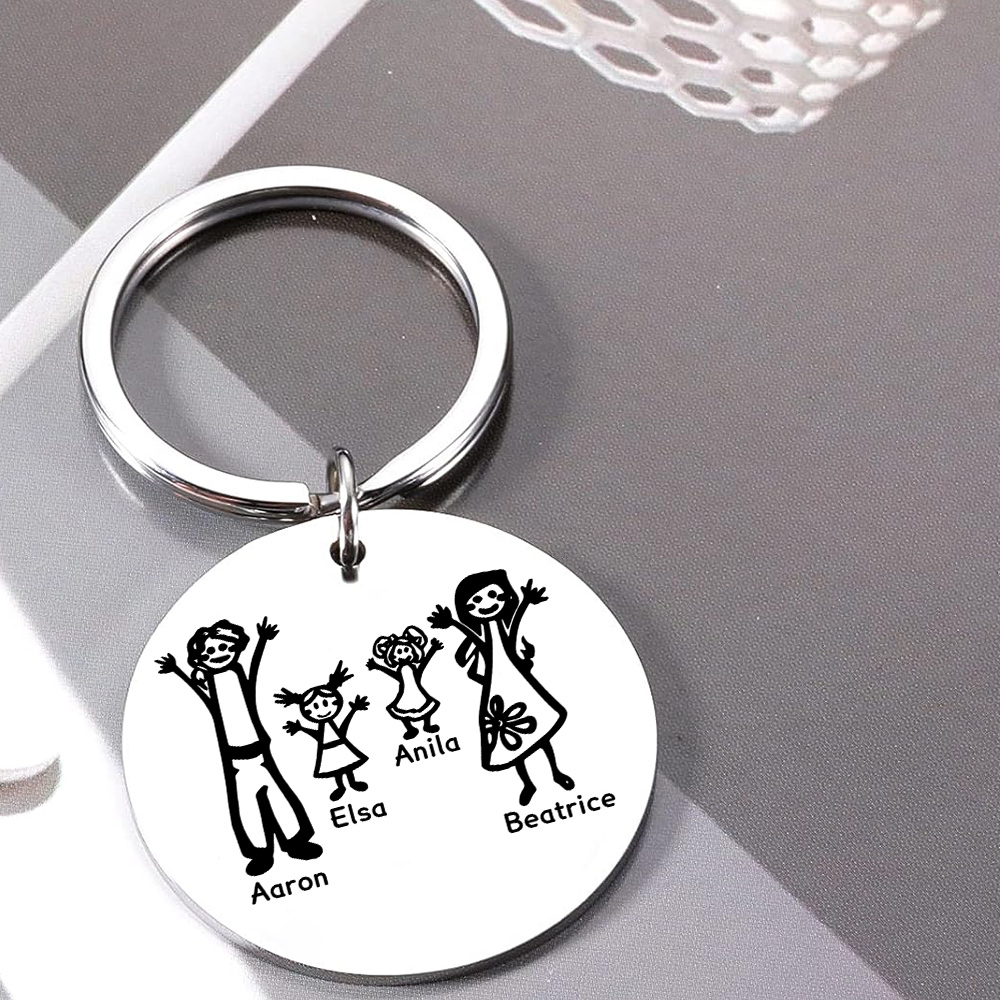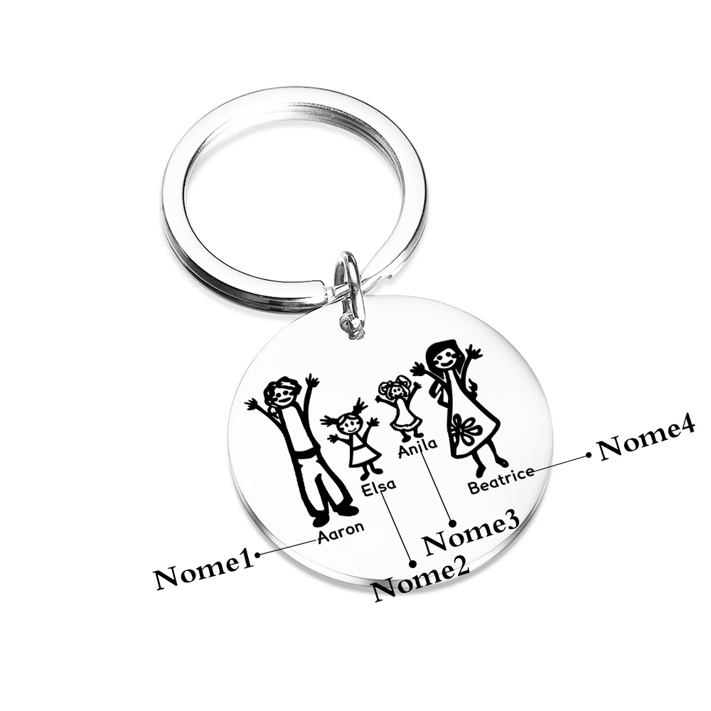 Papà Mamma e 2 Figlie-Portachiavi personalizzabili 4 nomi regalo per famiglia