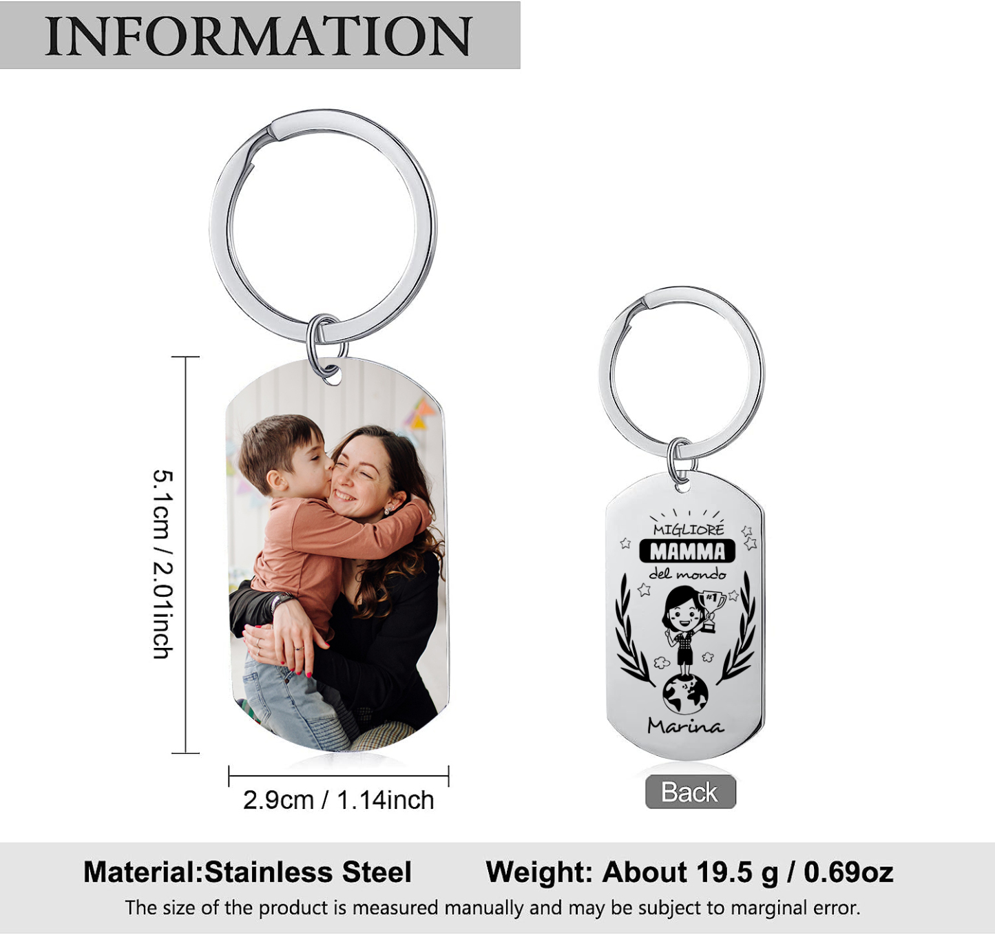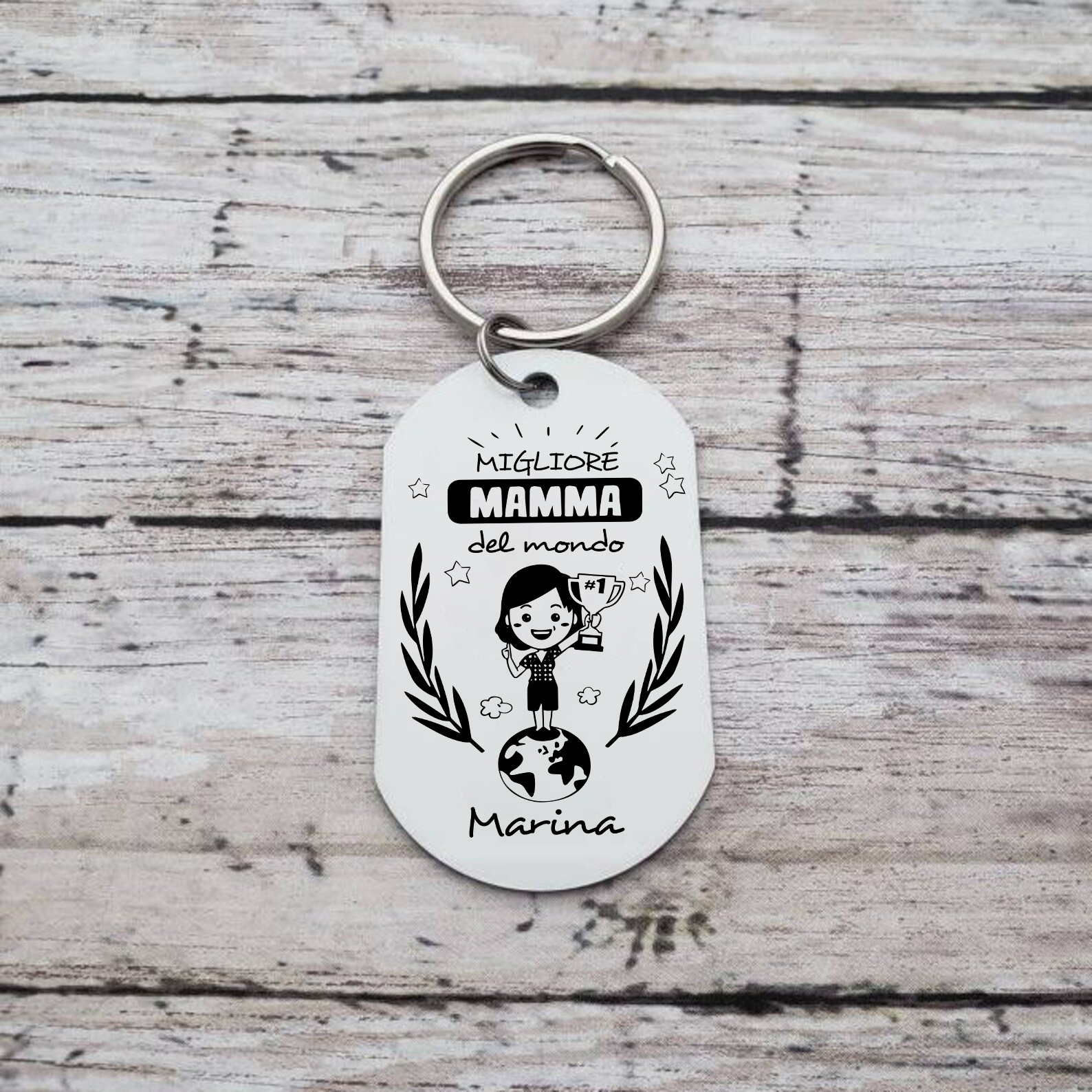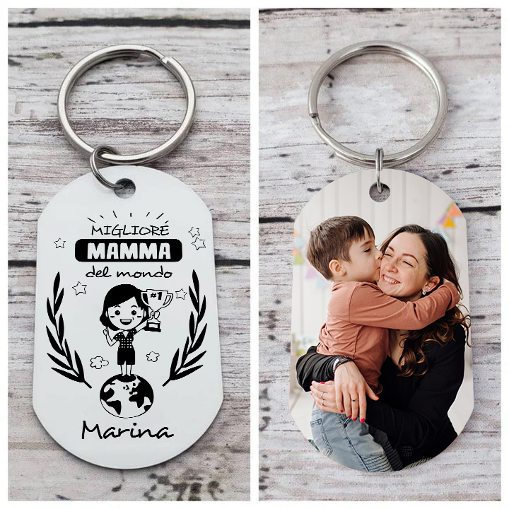 PREMIO PER LA MIGLIORE MAMMA-Portachiavi personalizzato con foto e nome