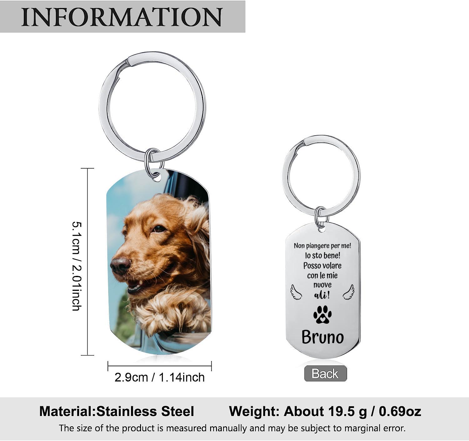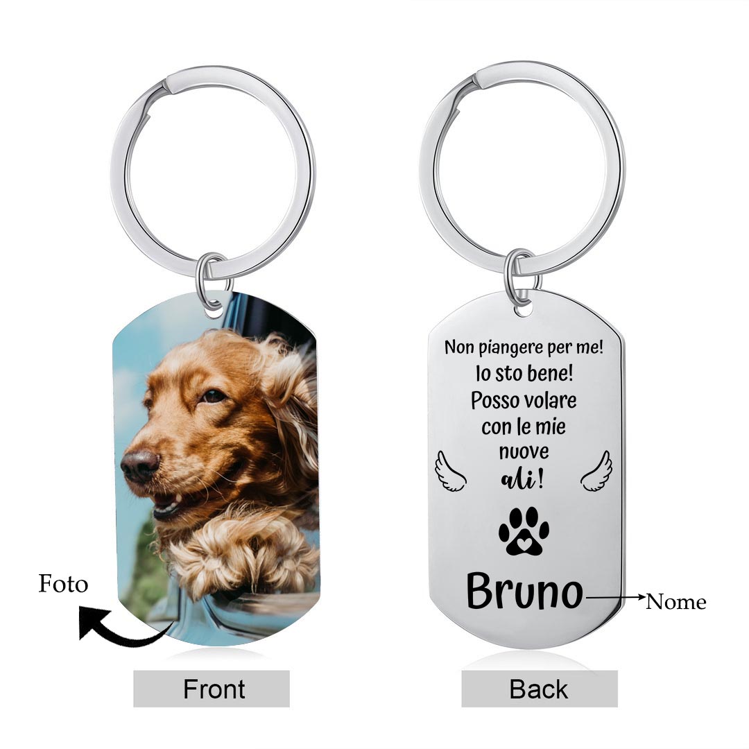 Portachiavi NON PIANGERE PER ME! cane e gatto commemorativo personalizzato con foto e nome