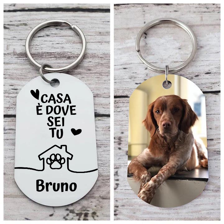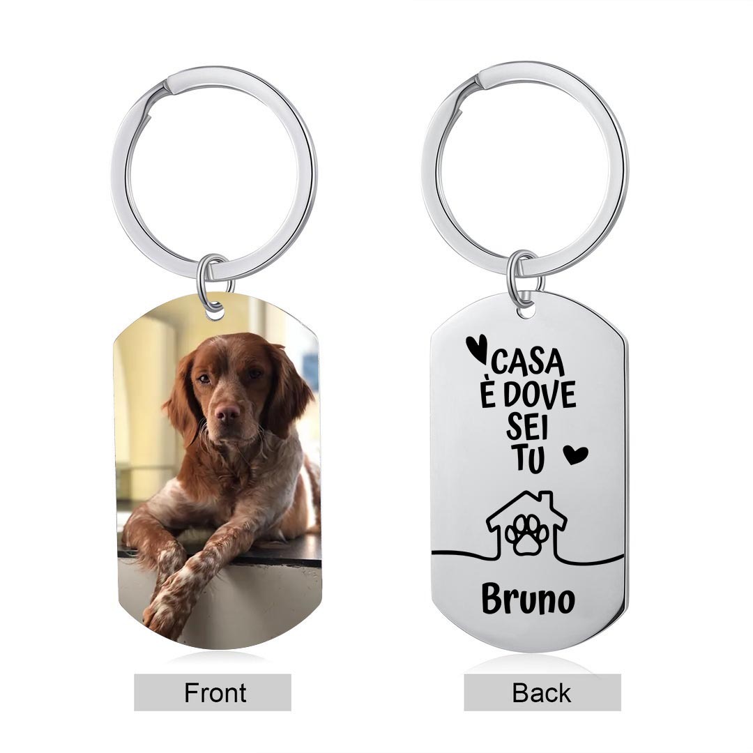 Portachiavi CASA È DOVE SEI TU io con il mio cane e gatto personalizzato con foto e nome