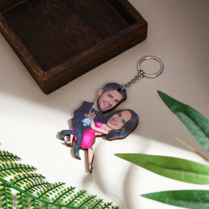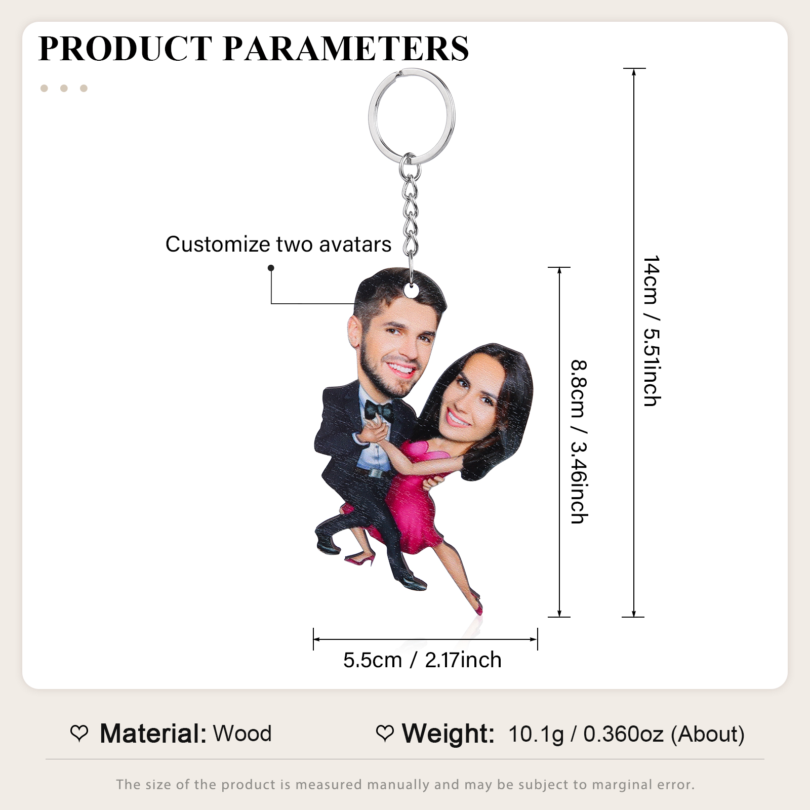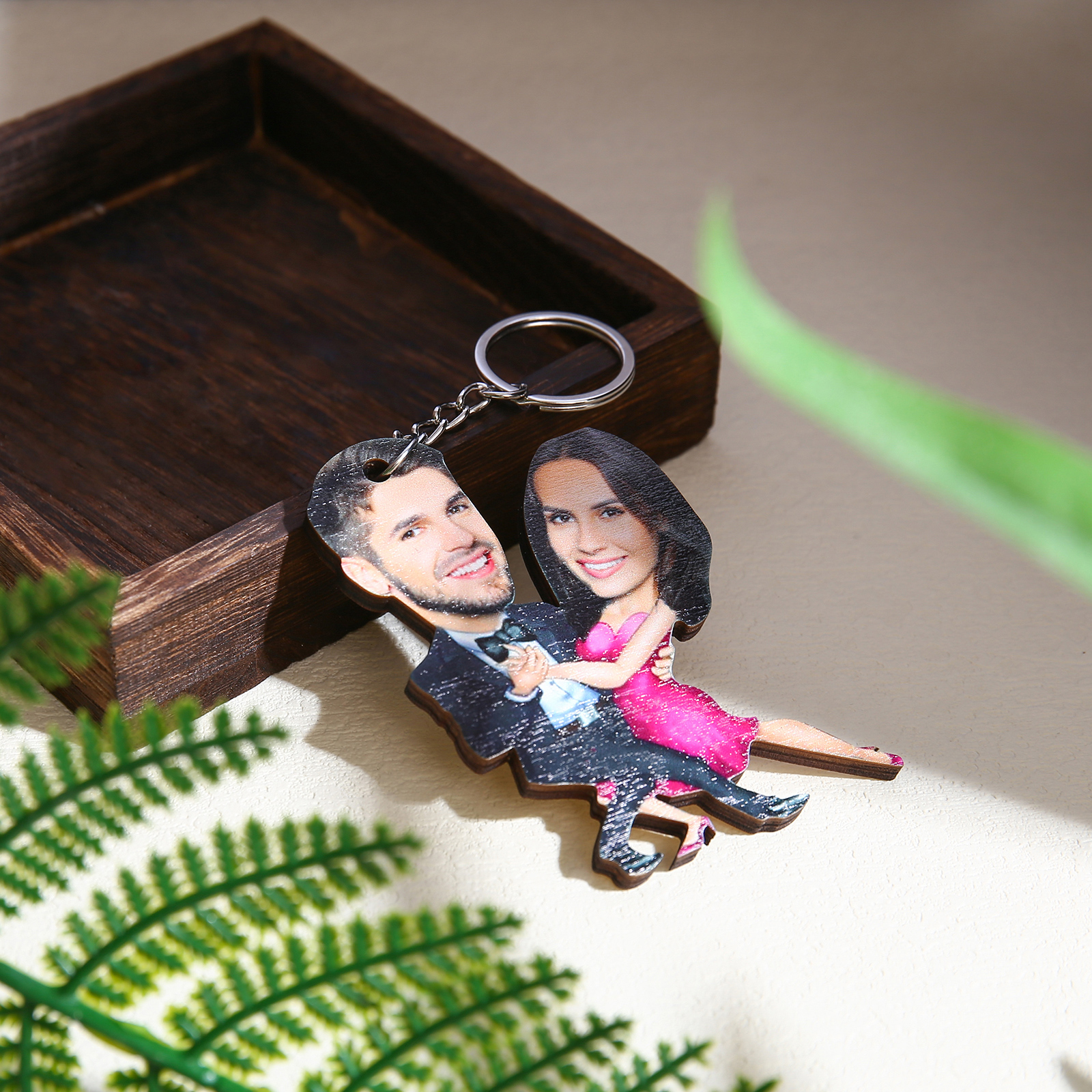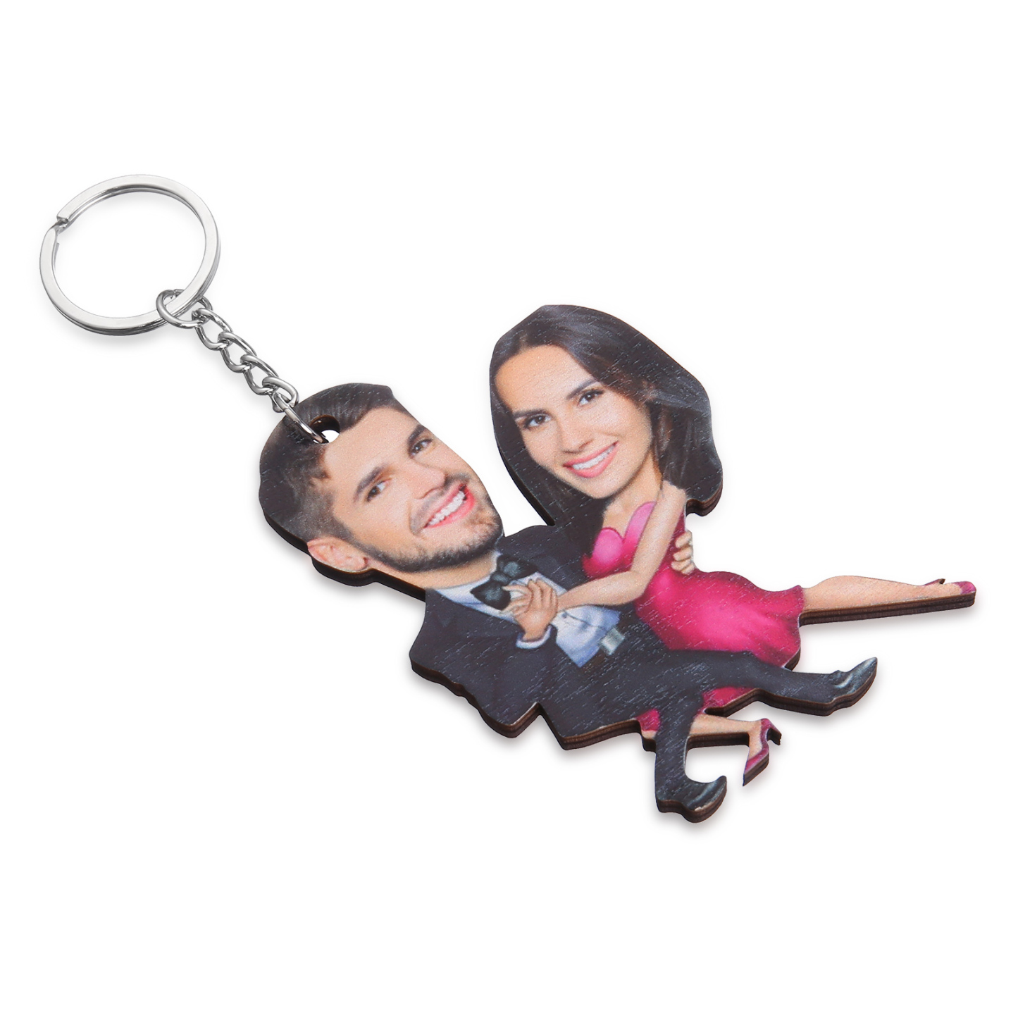 Portachiavi in legno con 2 avatar digitali personalizzati regalo perfetto per amore