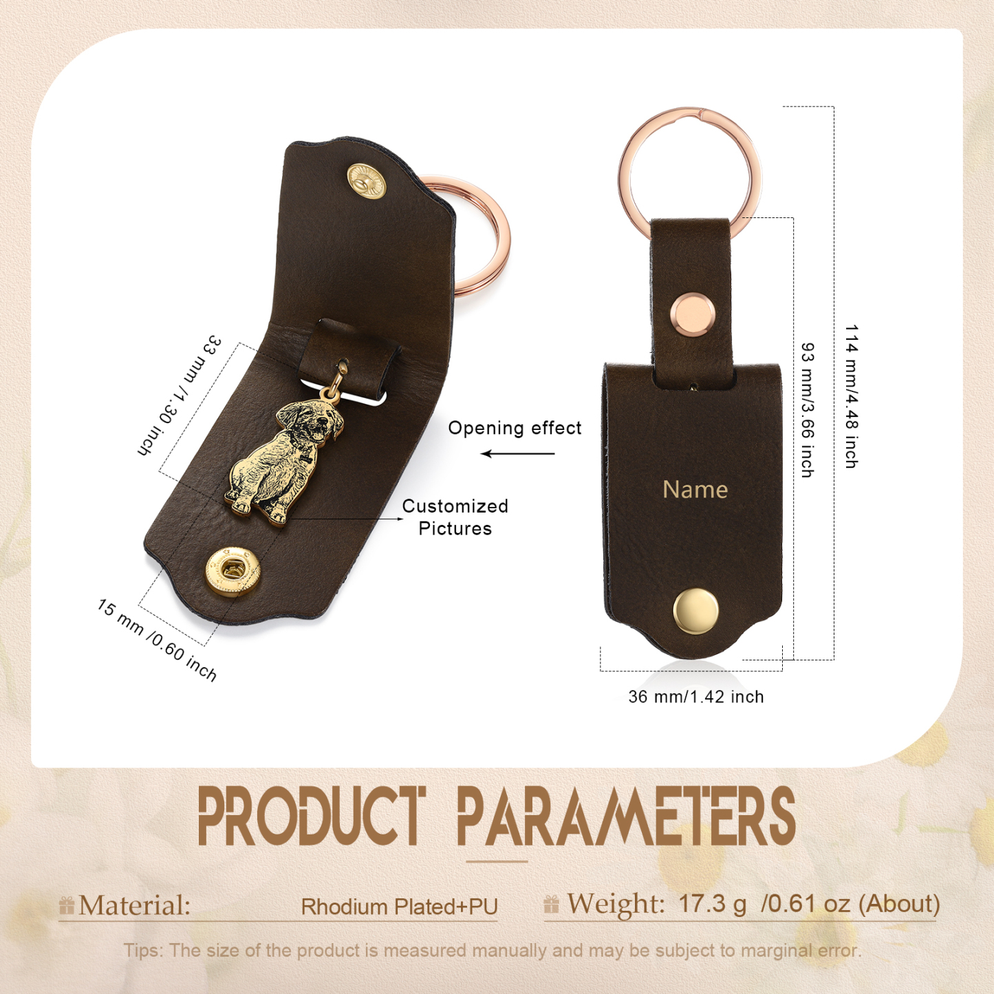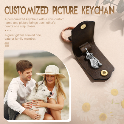 Portachiavi in Pelle 1 foto e 1 nome personalizzati per animale domestico