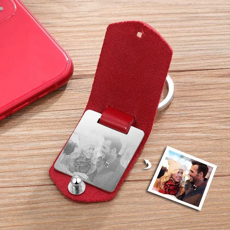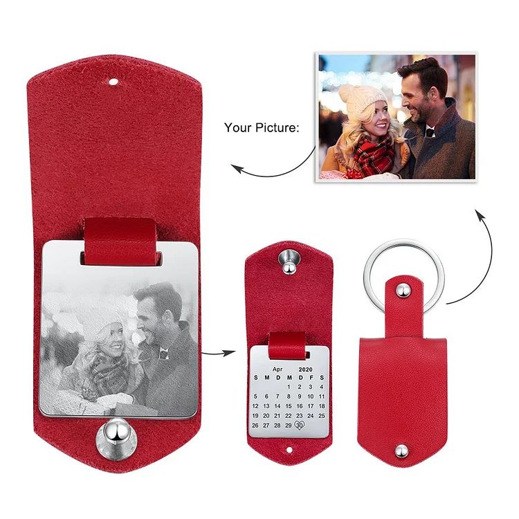 Portachiavi Pelle 1 foto e 1 data personalizzabili per coppia