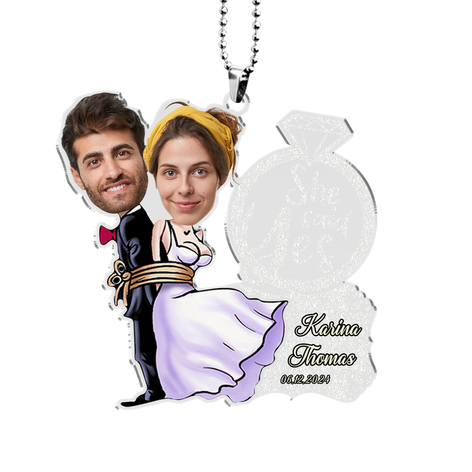 Portachiavi/Pendente di nozze immagine personalizzato con 2 foto e 1 testo e 2 nomi e 1 data per coppia