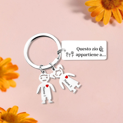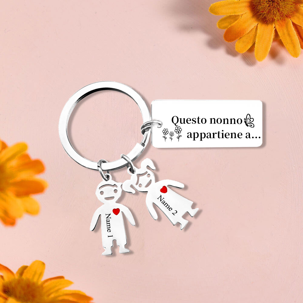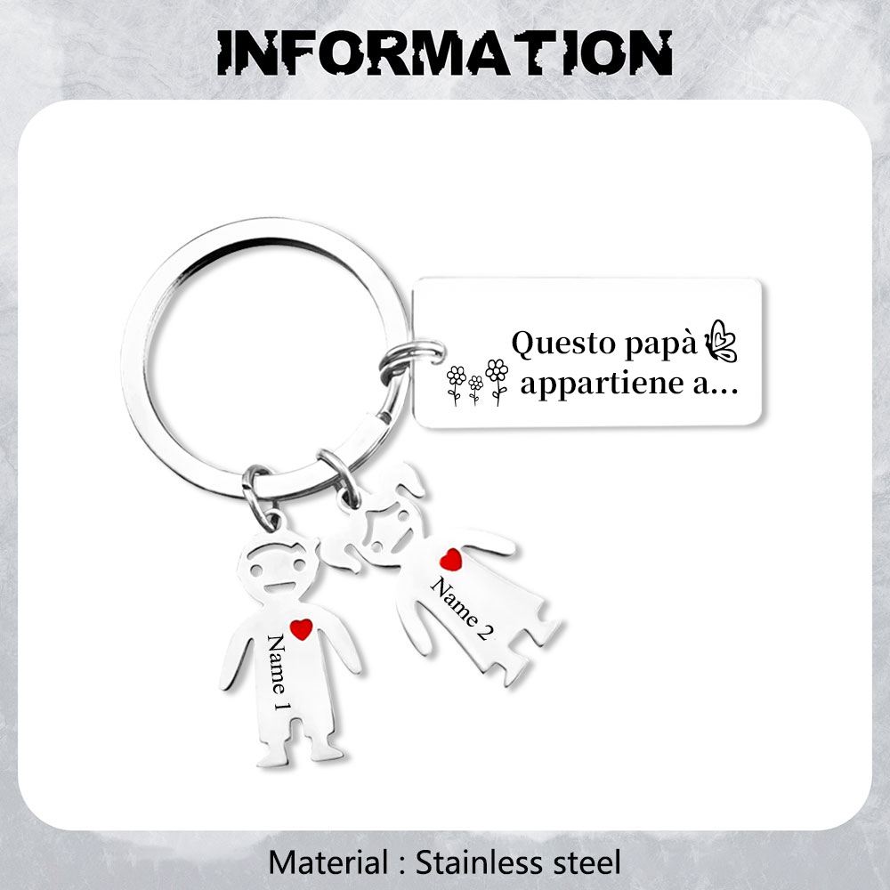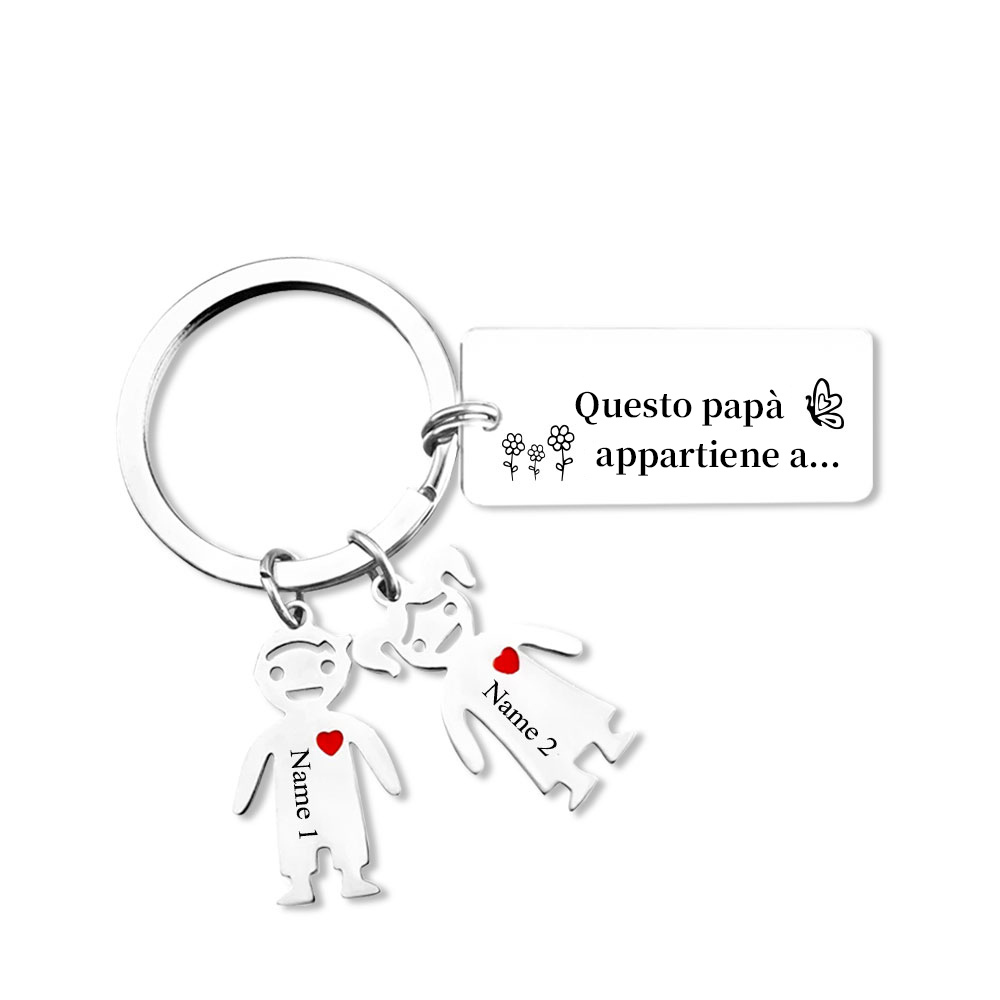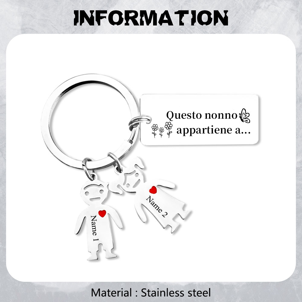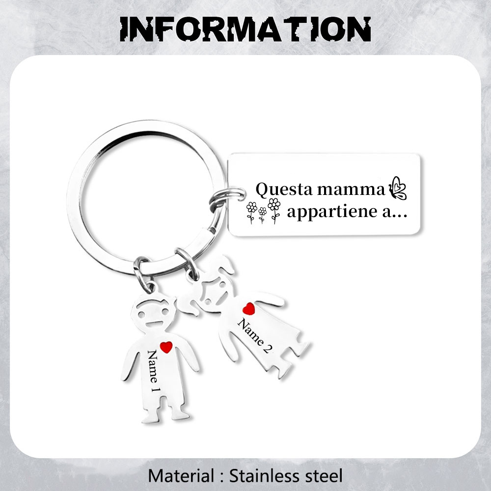 Questa mamma appartiene a-Portachiavi ciondolo bambino 2 nomi personalizzati regalo per papà/mamma/zio/nonno/nonna