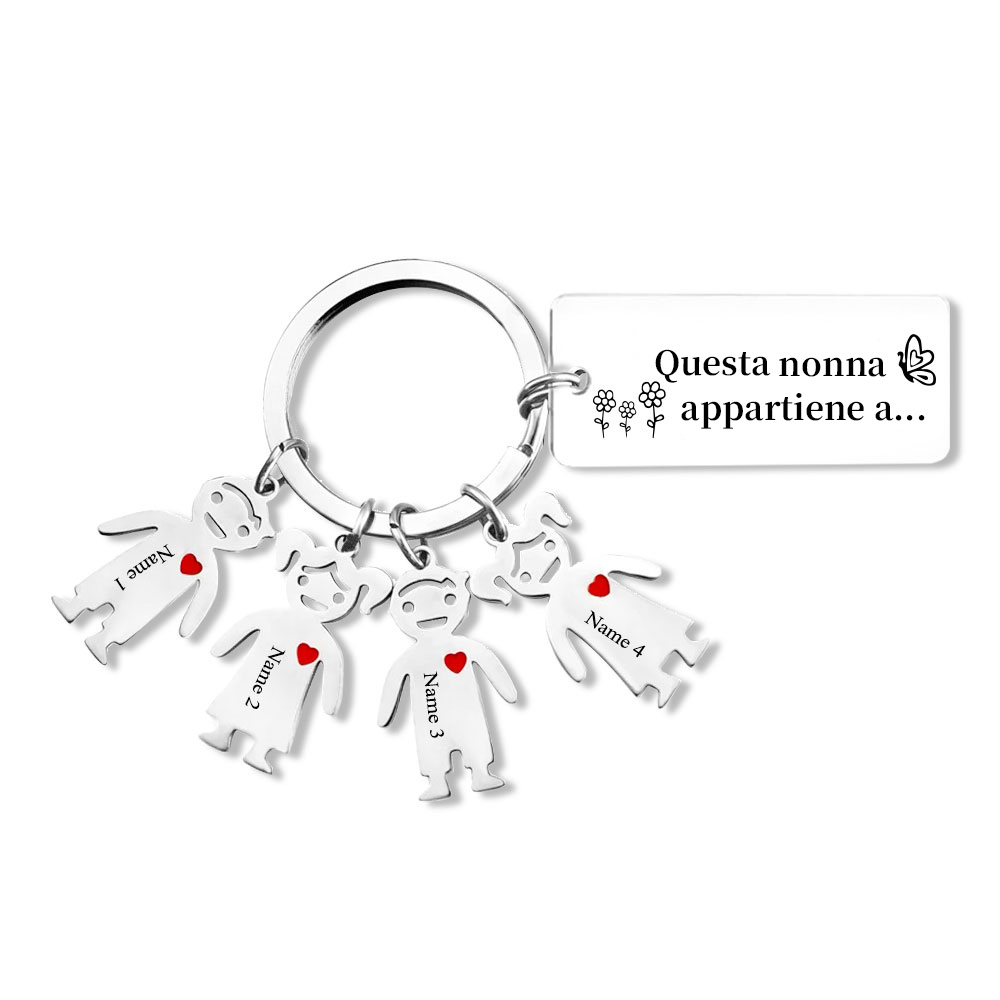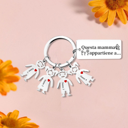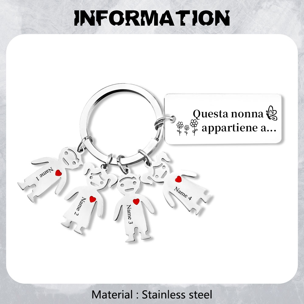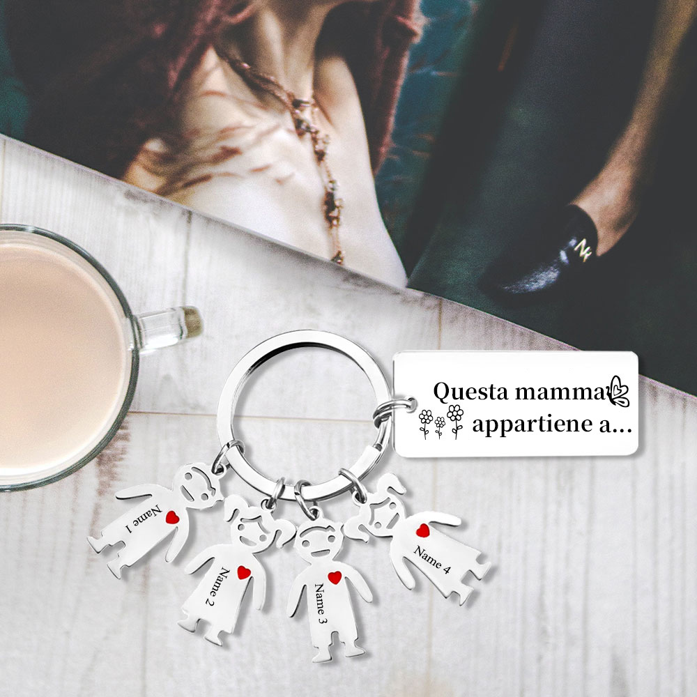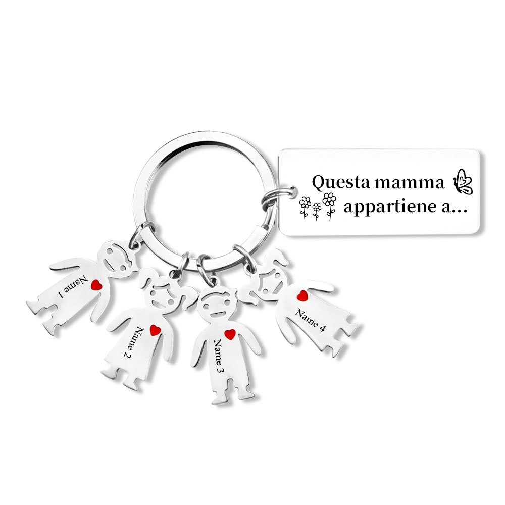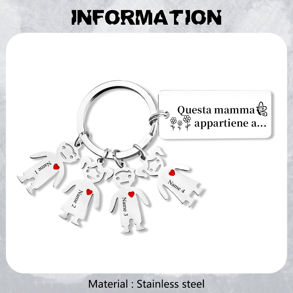 Questa mamma appartiene a-Portachiavi ciondolo bambino 4 nomi personalizzati regalo per papà/mamma/zio/nonno/nonna