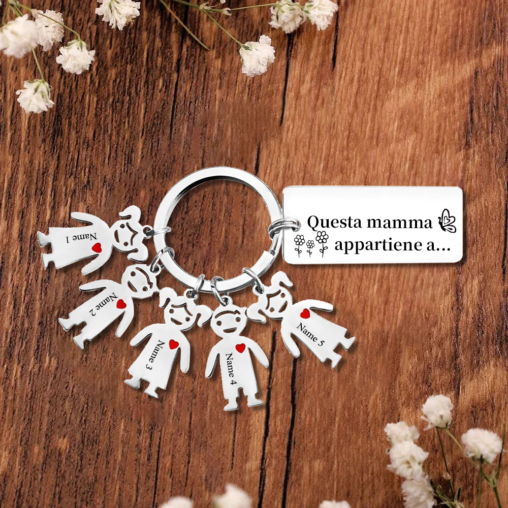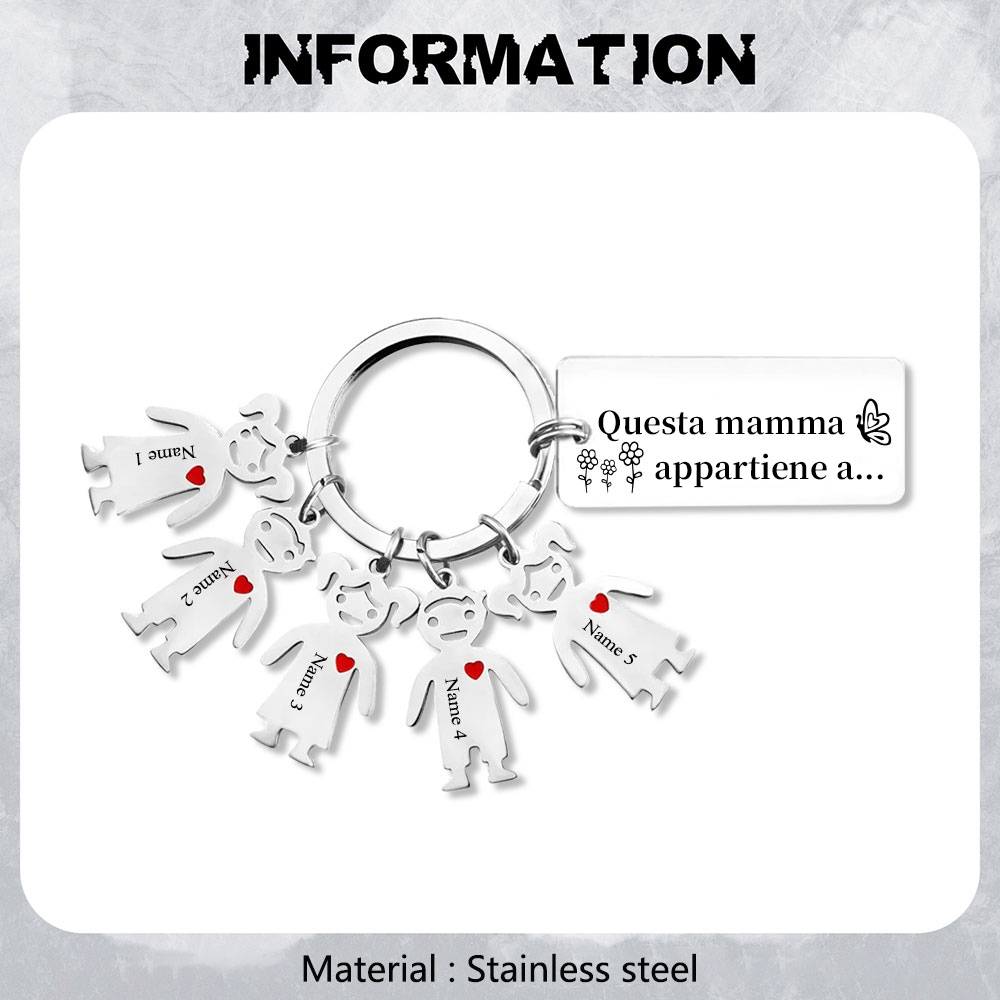 Questa mamma appartiene a-Portachiavi ciondolo bambino 5 nomi personalizzati regalo per papà/mamma/zio/nonno/nonna