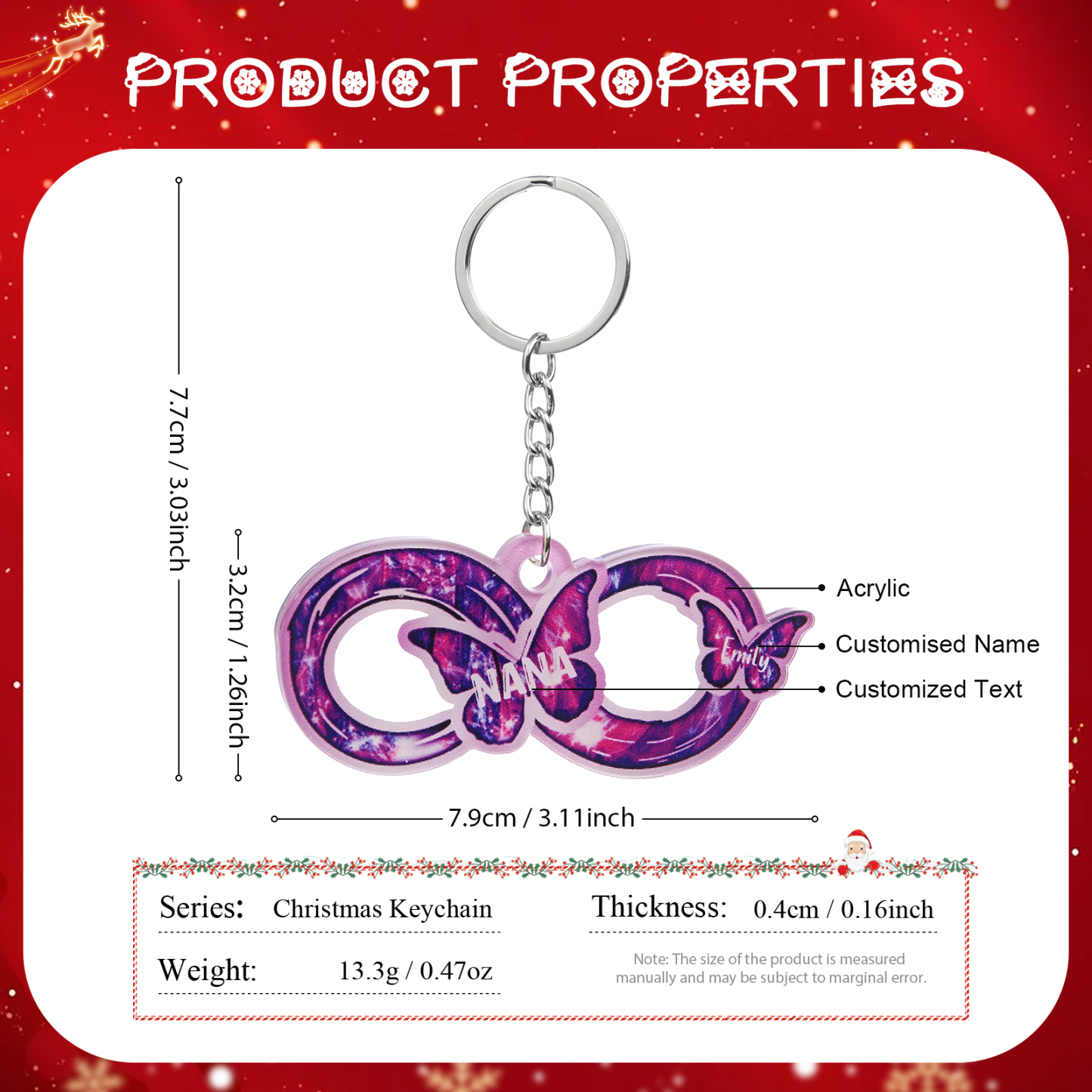 Portachiavi inifinito e farfalla con 1 nome personalizzabile