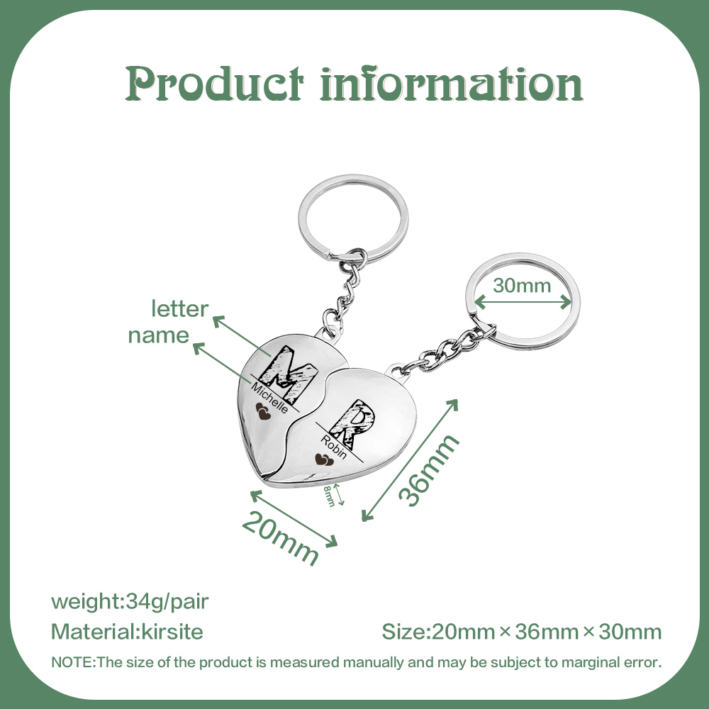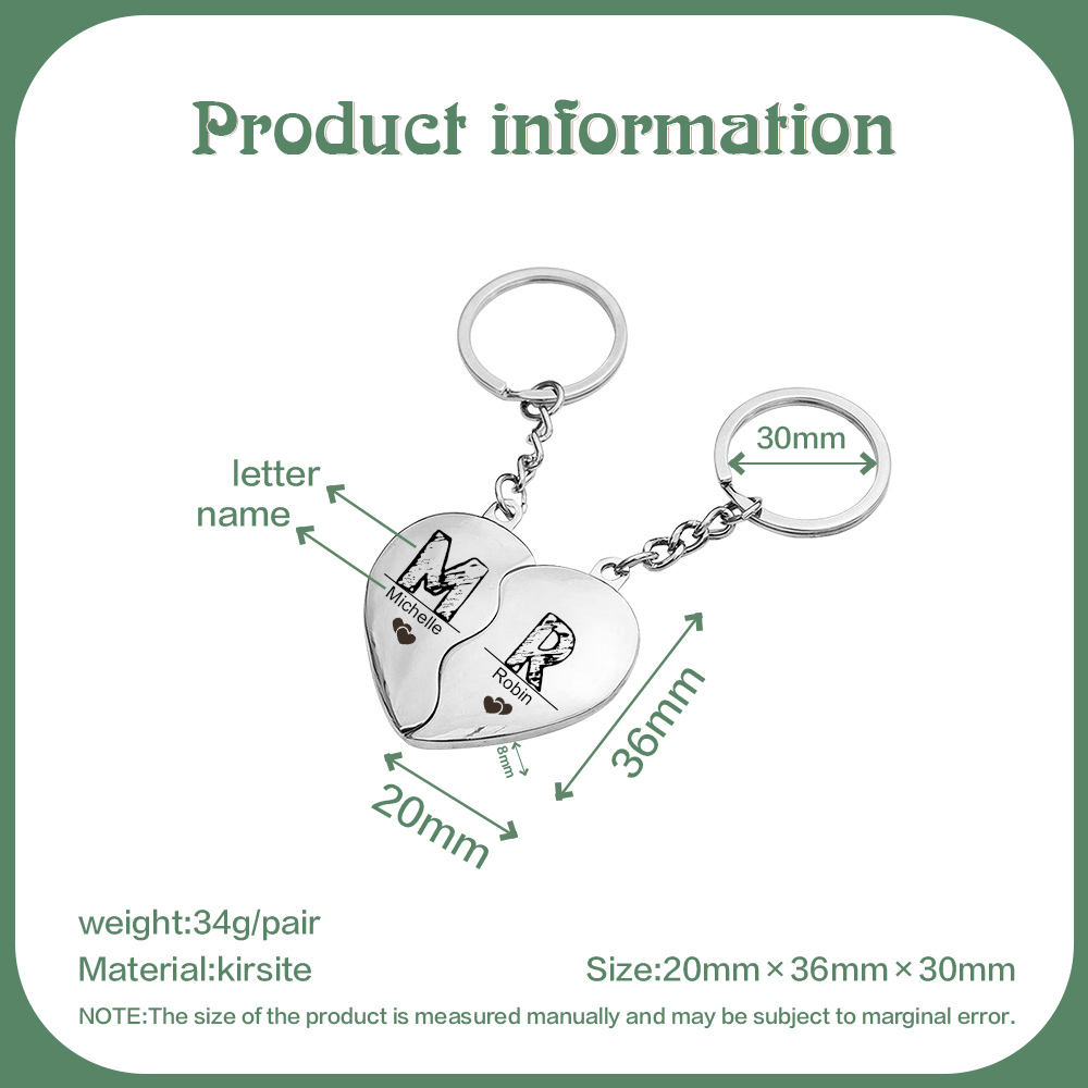 Portachiavi a cuore puzzle 2 nomi lettere personalizzati per coppia