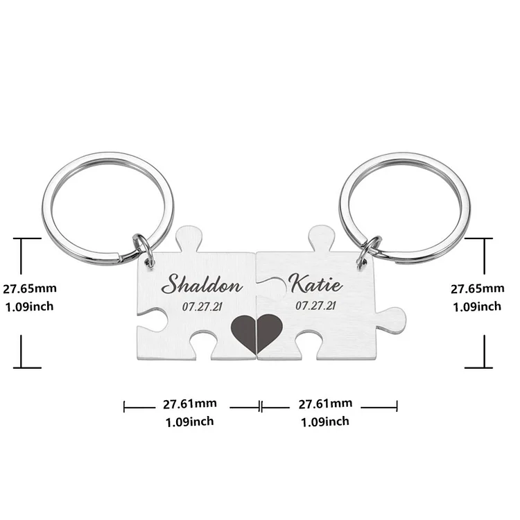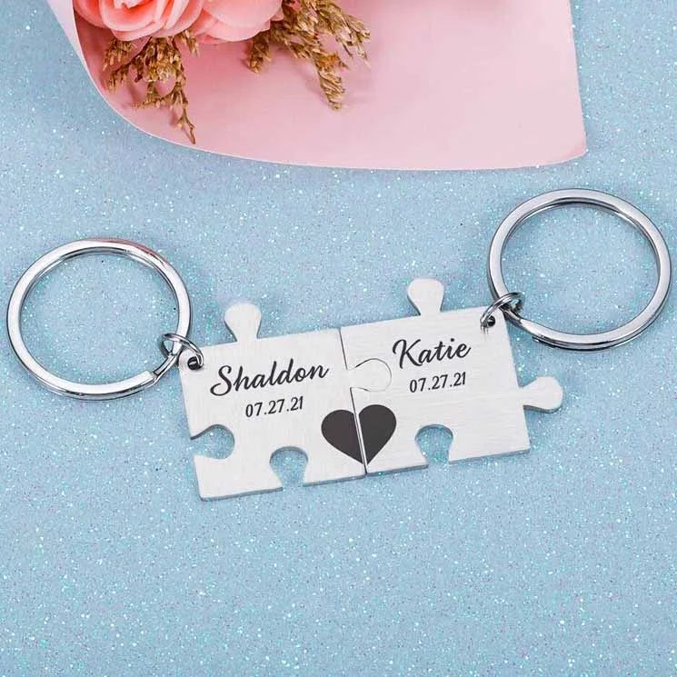 Portachiavi per coppia puzzle 2 nomi e data personalizzabili